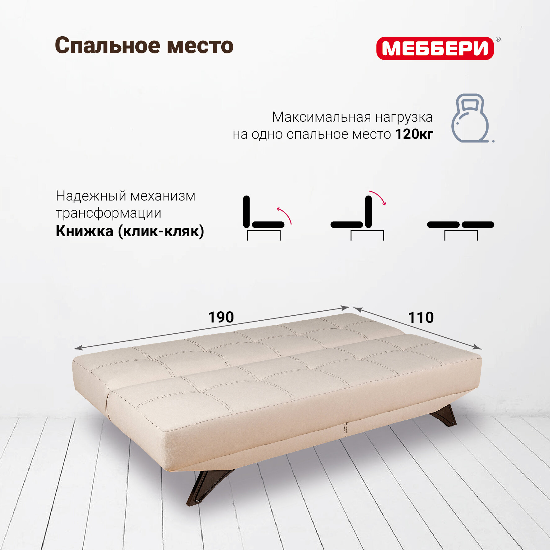 10 цен на Диван-кровать Эрик на кухню, клик-кляк книжка, микровелюр, бежевый, раскладной в гостиную