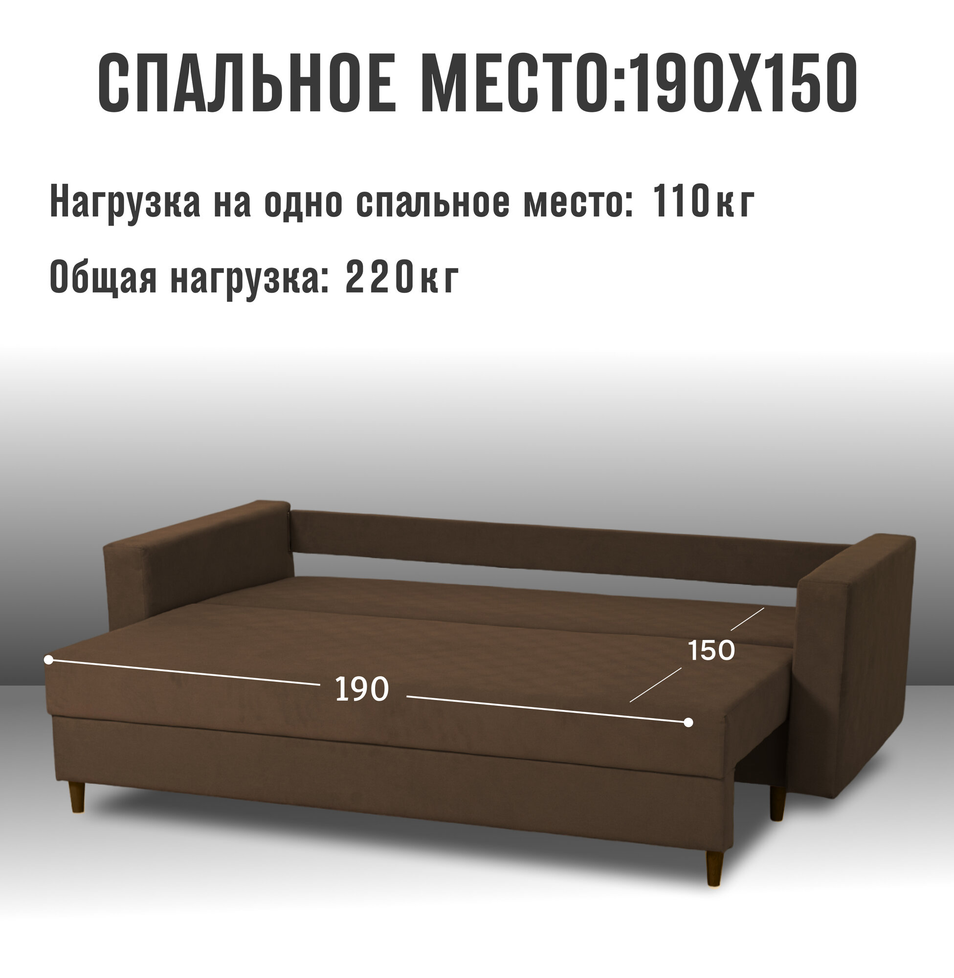 Раскладной диван кровать Венеция прямой, механизм еврокнижка, 220х96х85 см, коричневый, диванчик на ножках с ящиком для хранения информация: