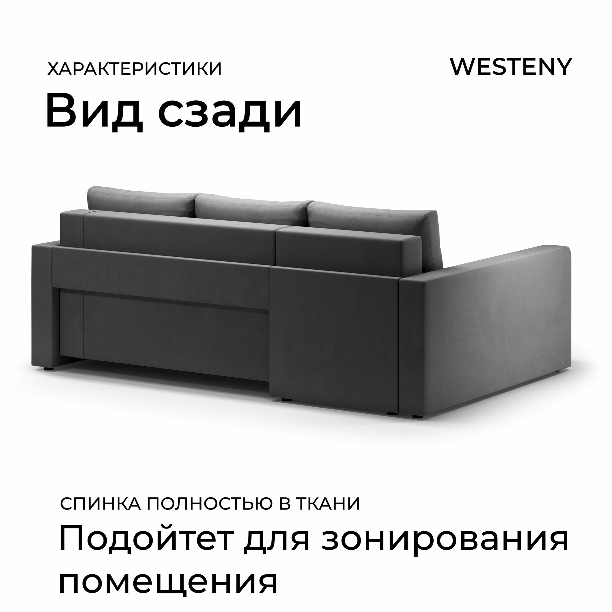 Диван угловой WESTENY "ART-102 левый" 236х155х81, 150х208, 3 места, темно-серый велюр 51 146 ₽
