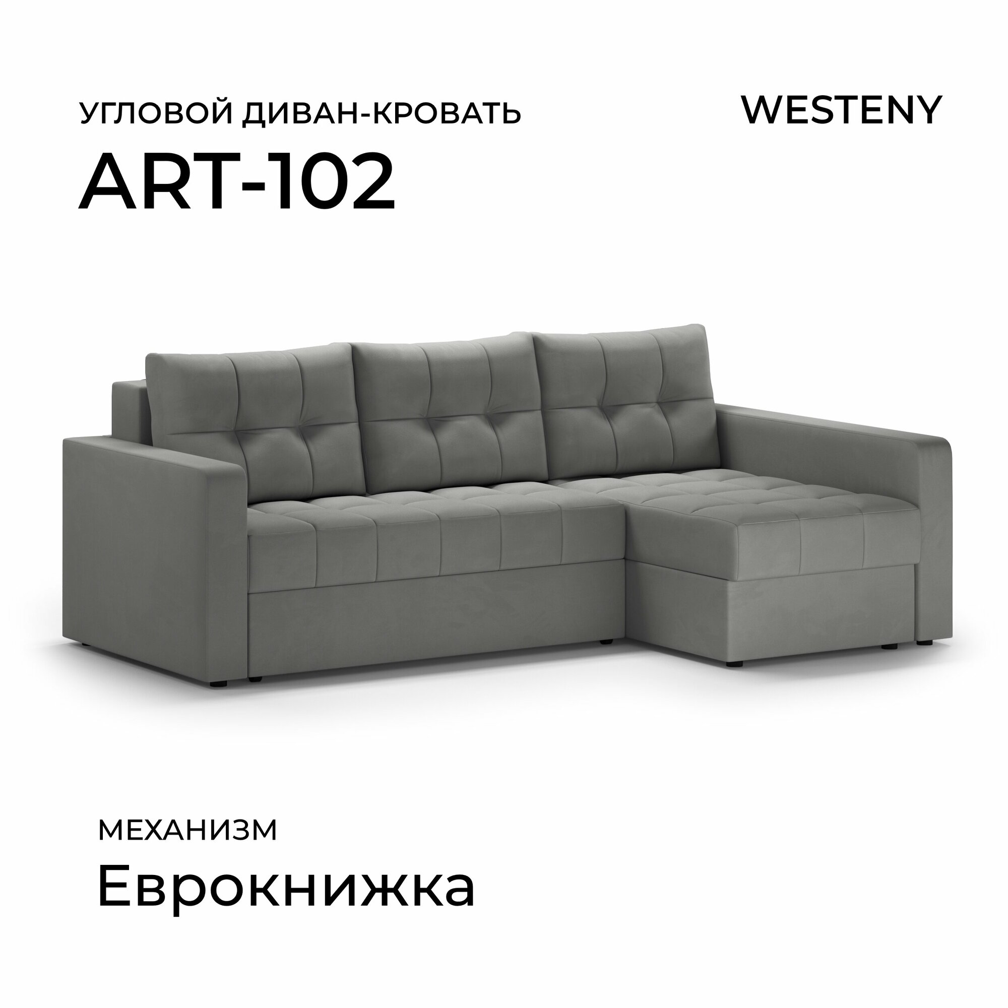 Диван угловой WESTENY "ART-102 правый" 236х155х81, 150х208, 3 места, серый велюр 51 146 ₽