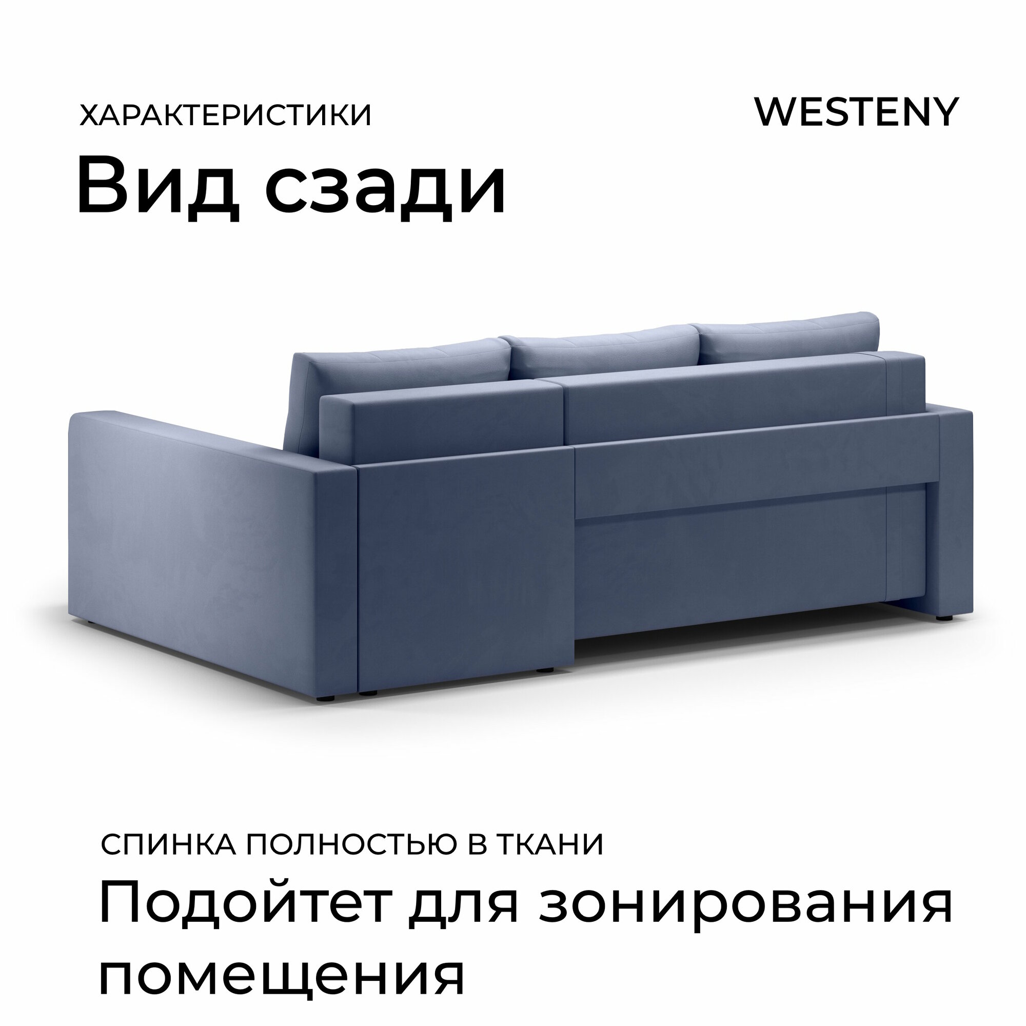 Диван угловой WESTENY "ART-102 левый" 236х155х81, 150х208, 3 места, синий велюр 51 146 ₽