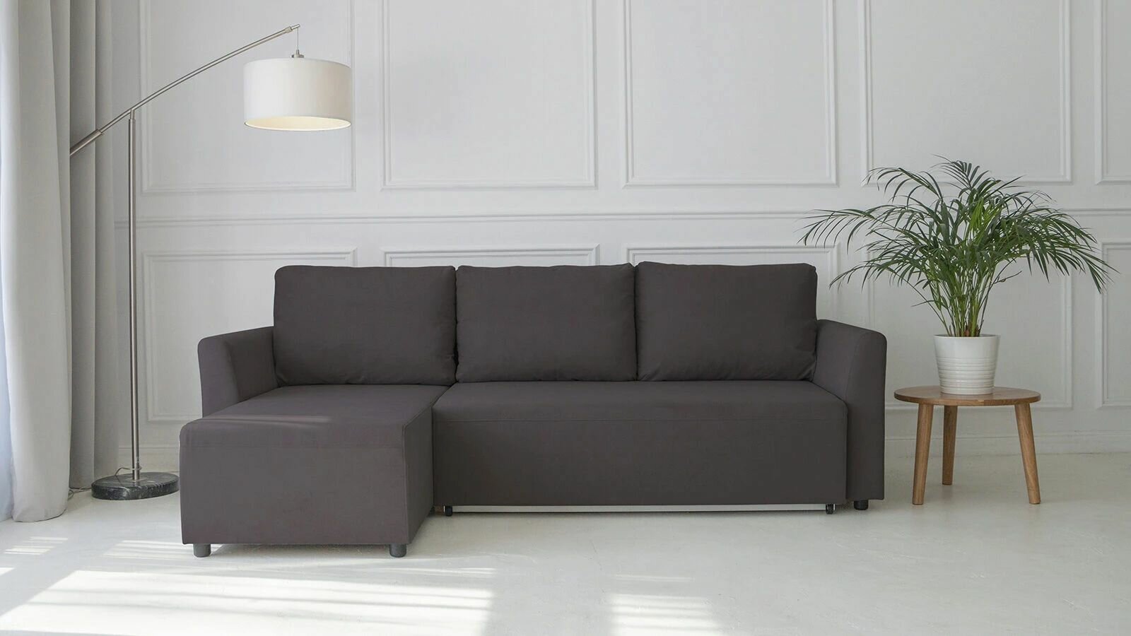 Диван угловой Атланта М левый угол, велюр серый, вставка велюр черный