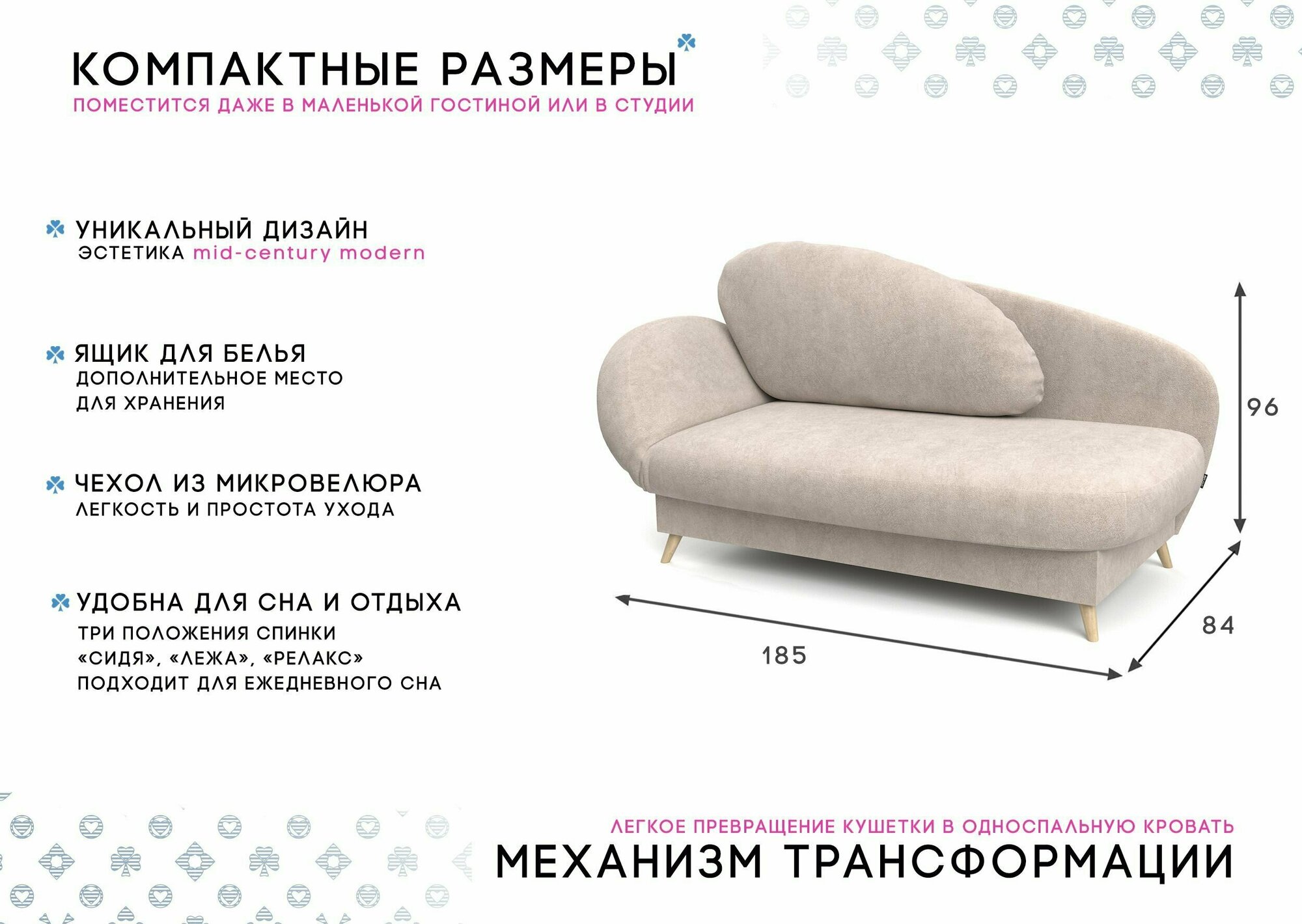 Кушетка, раскладная, PUSHE Валетта, левая, бежевый Milano 1 cream информация: