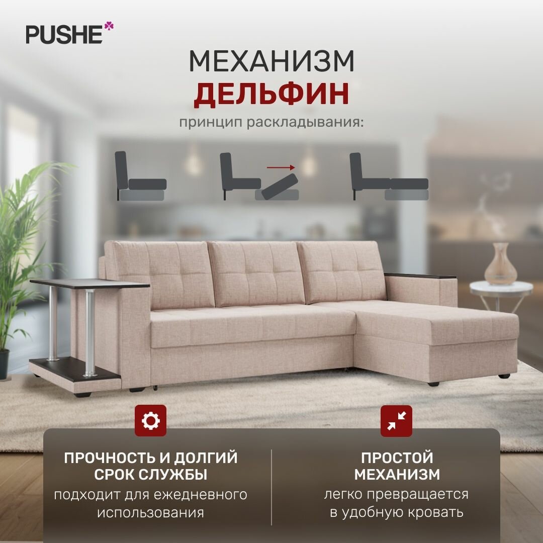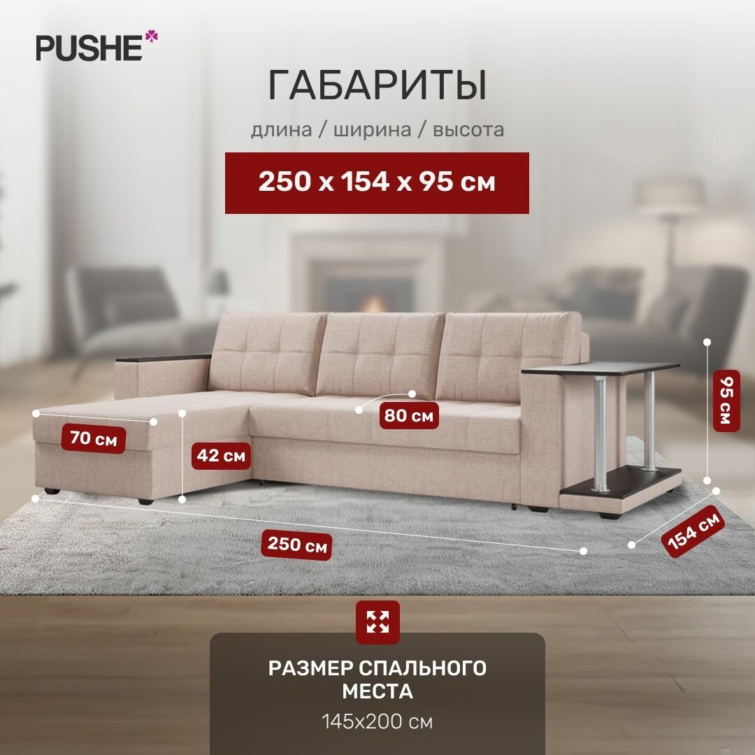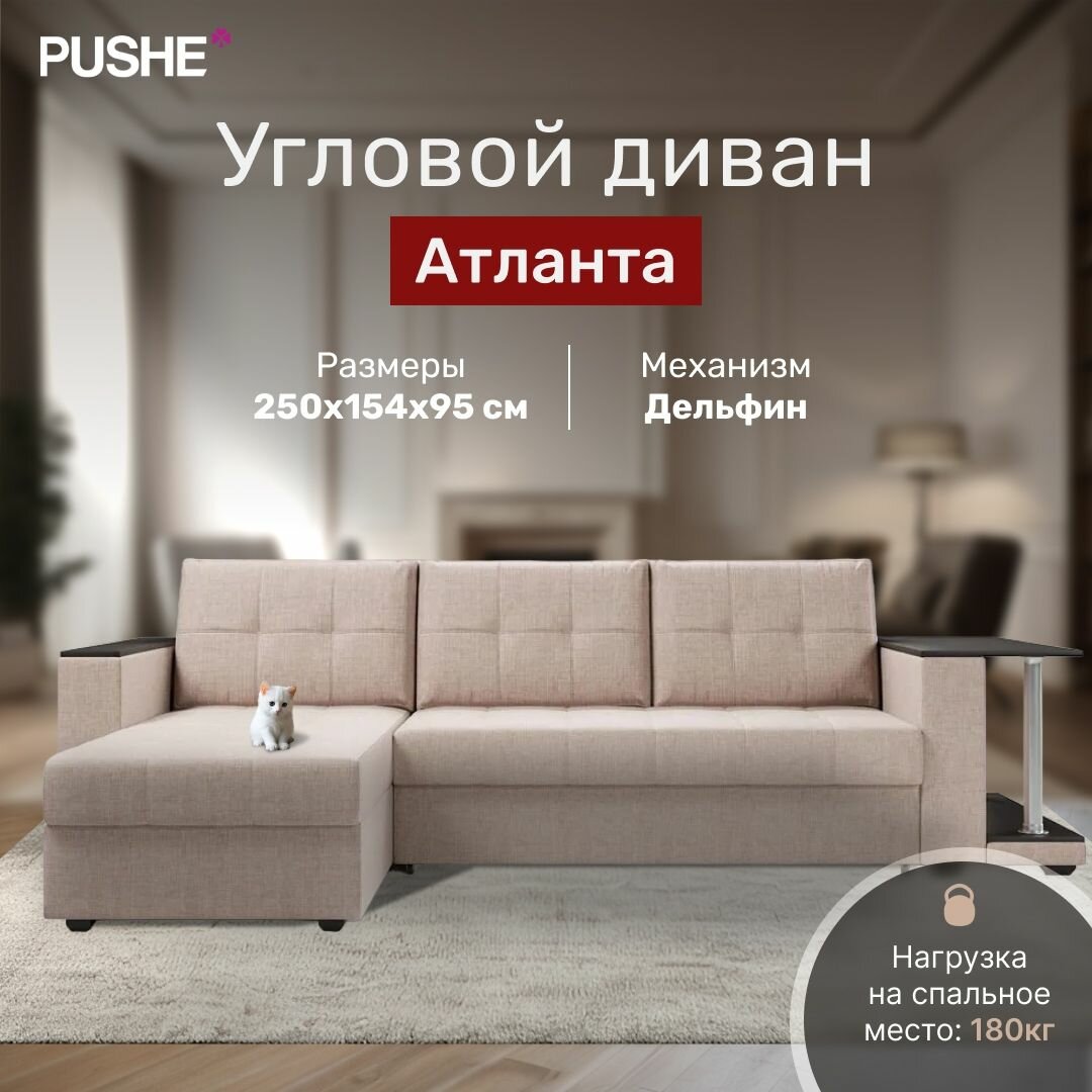 Угловой диван-кровать Атланта Классик со столом 2, 250х154х95 см, механизм Дельфин, с ящиком для белья информация: