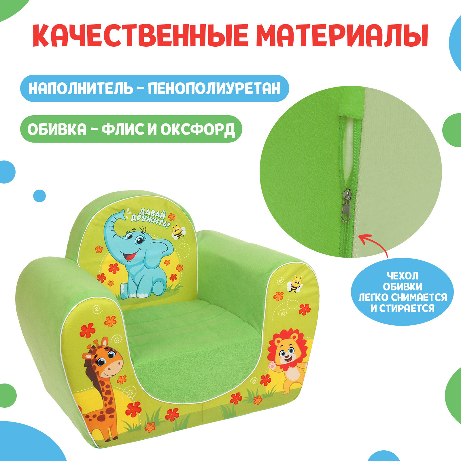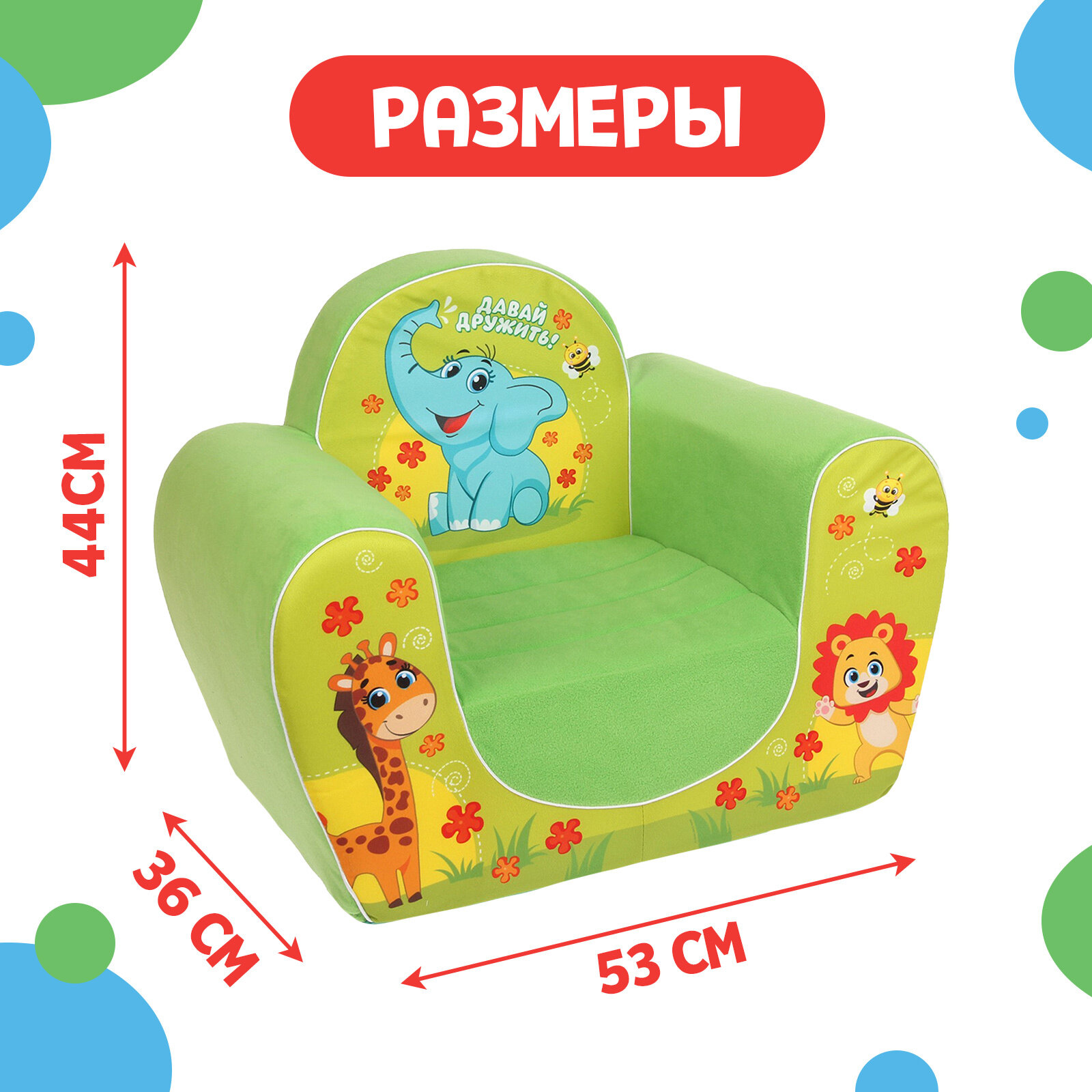 Мягкая игрушка-кресло «Давай дружить: Звери» информация: