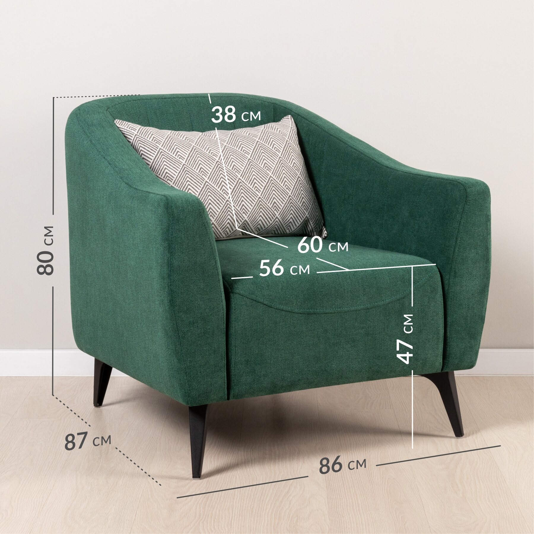 10 цен на Кресло в гостинную Боне 03.07 Велюр Happy 697 (Хвойный зеленый), Лофт 1 рогожка (ромб бело-серый) 86*87*80 см.