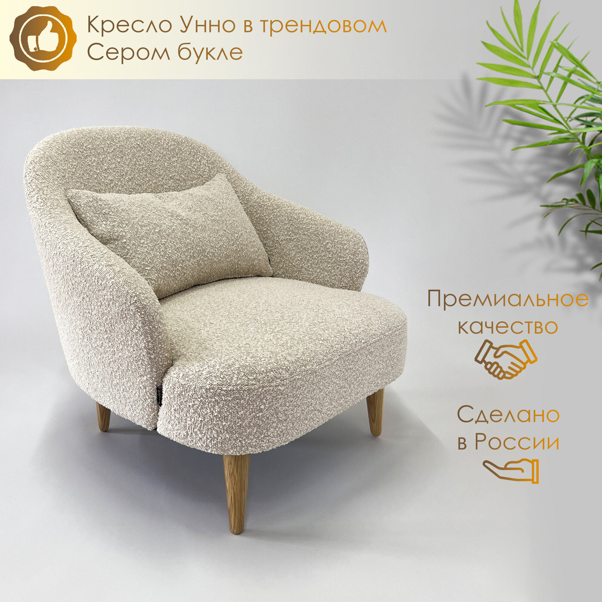Кресло Унно в ткани букле, серое кресло, мягкое кресло, опоры дуб 34 802 ₽