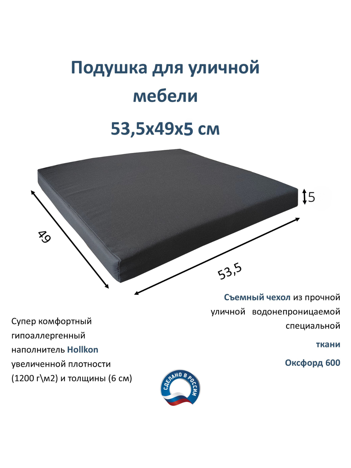 Подушка для мебели 53,5х49х5 Everena Marmaris dark grey Ротанг-плюс информация: