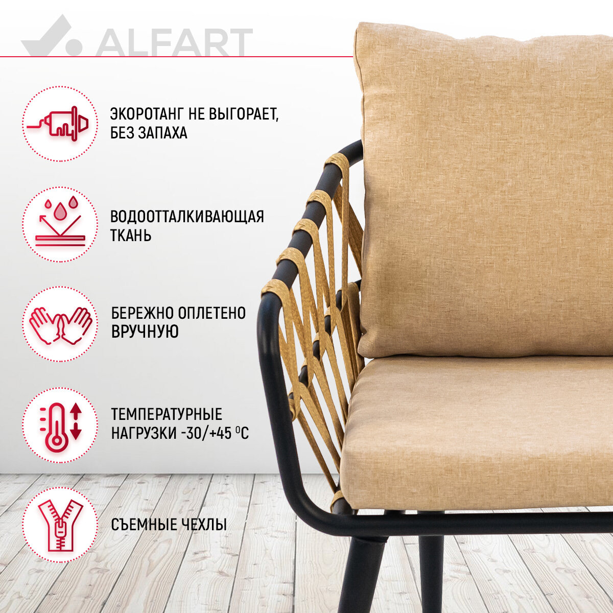 10 цен на Комплект плетеной мебели из искусственного ротанга ALFART LIMA (диван 2-мест, 2 кресла, стол журнальный) грано
