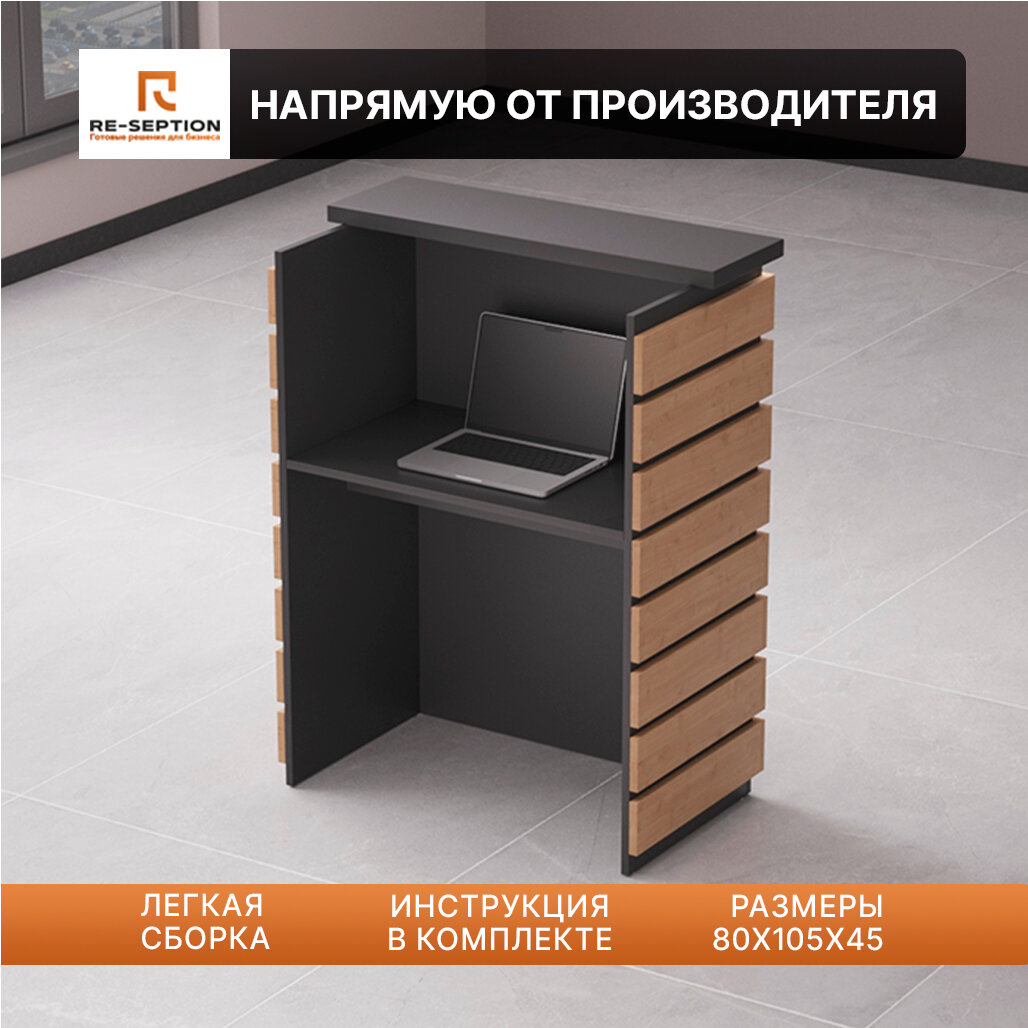 Стойка Ресепшн Мини "Горизонт" Черный/Юстус/Для администратора/ЛДСП/ Компактная/ 80х105х45см/ Без Подсветки 42 748 ₽
