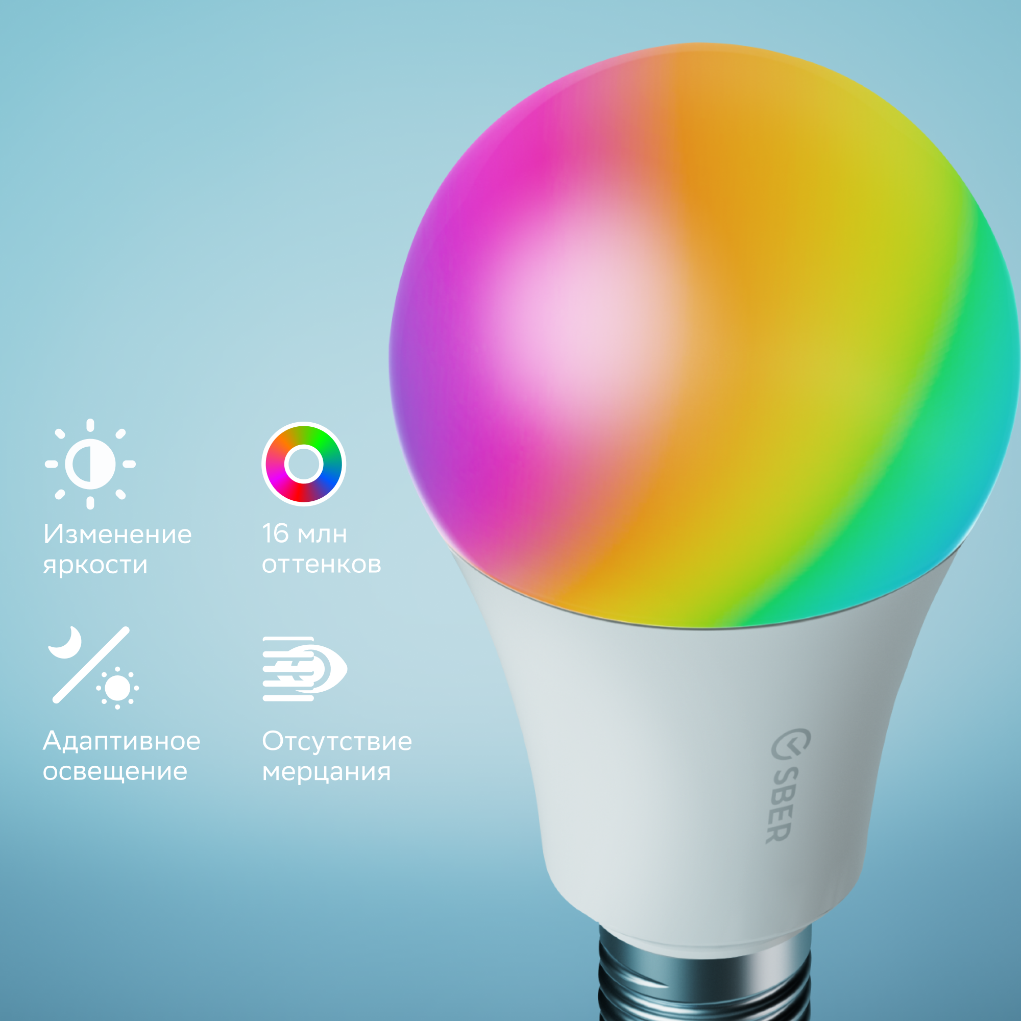 10 цен на Умная сверхъяркая лампа Sber с адаптивным светом E27/A70/14 Вт/1500Лм/WiFi