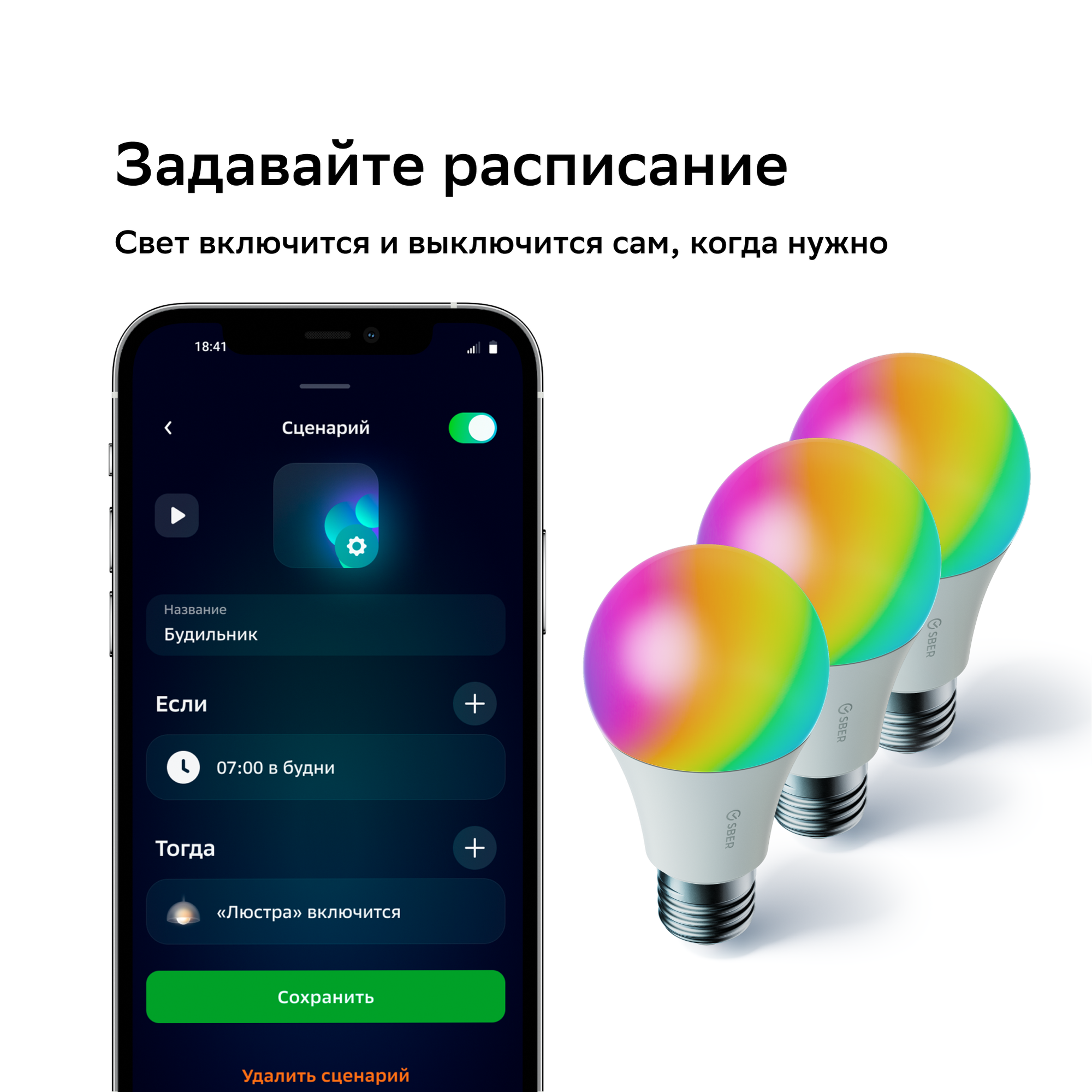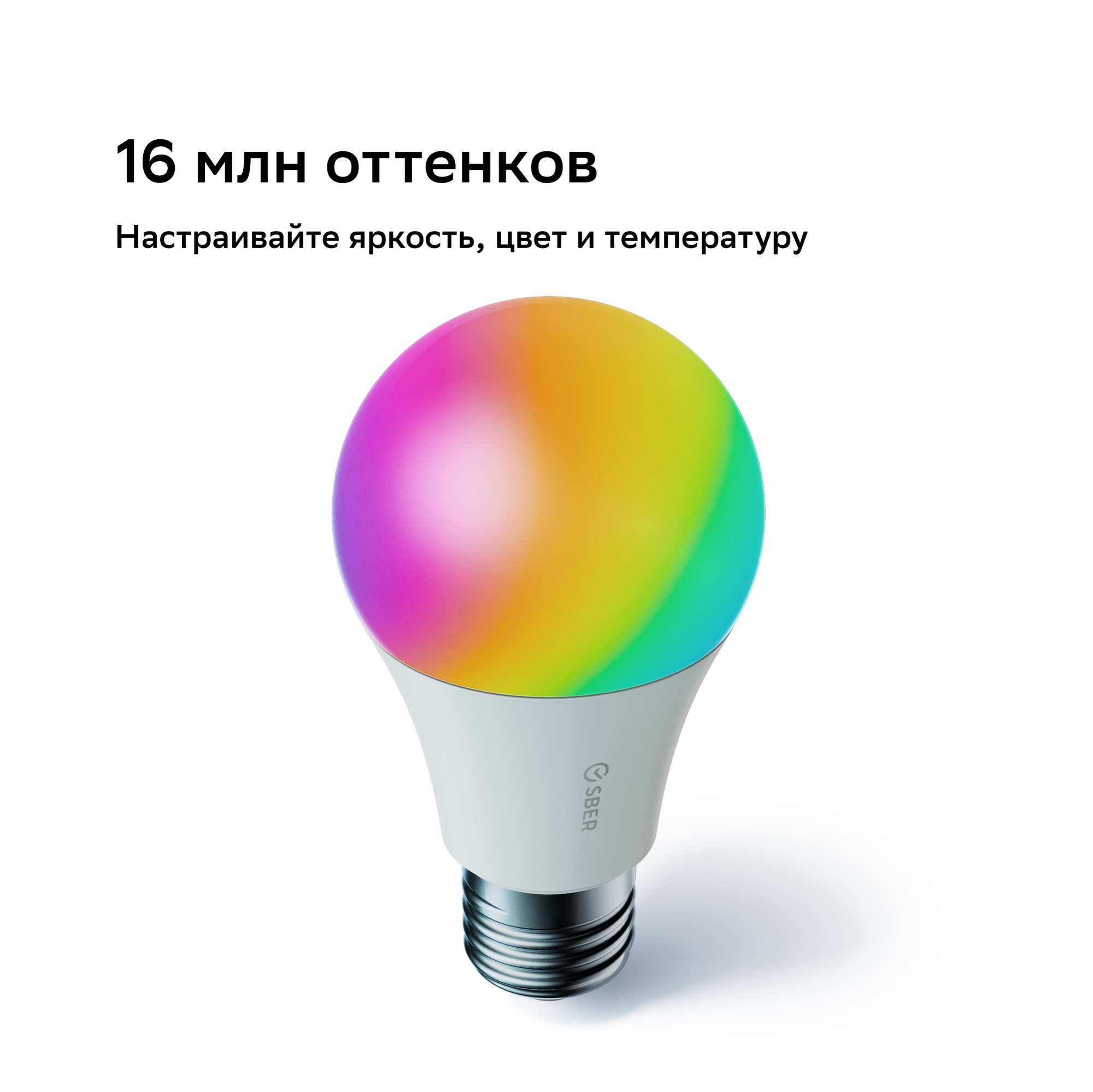 Sber Умная лампа Sber A60 SBDV-00115, E27, 9 Вт, 806 Лм, Wi-Fi, цветная, регулировка