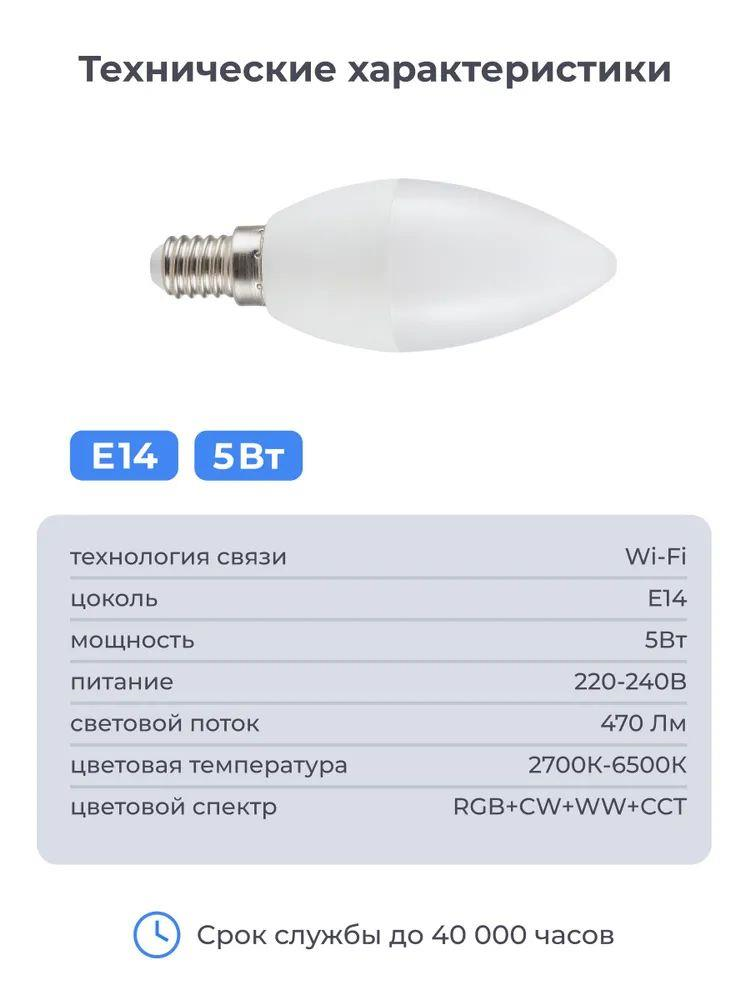 Умная лампочка SLS RGB WiFi E14 LED-03 информация: