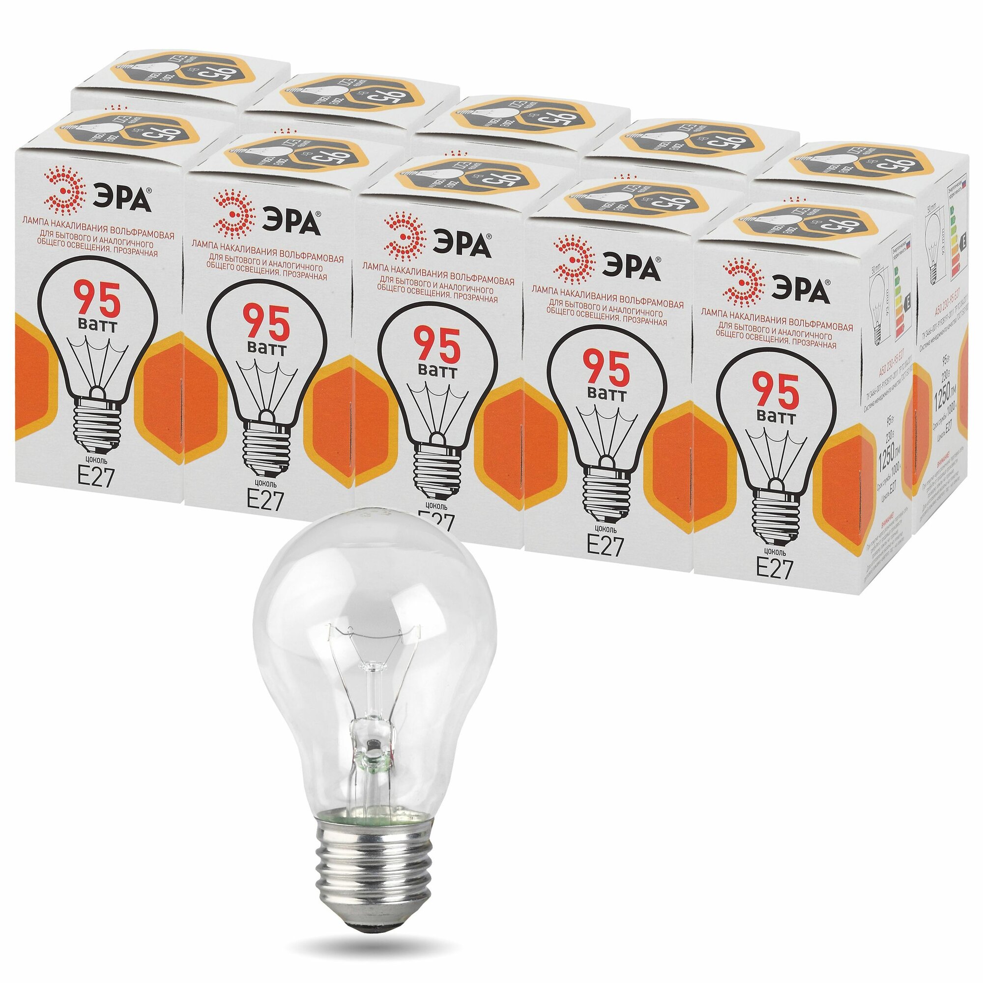 10 цен на Лампа накаливания ЭРА A50 95Вт E27 230В груша прозрачная набор 10 шт.