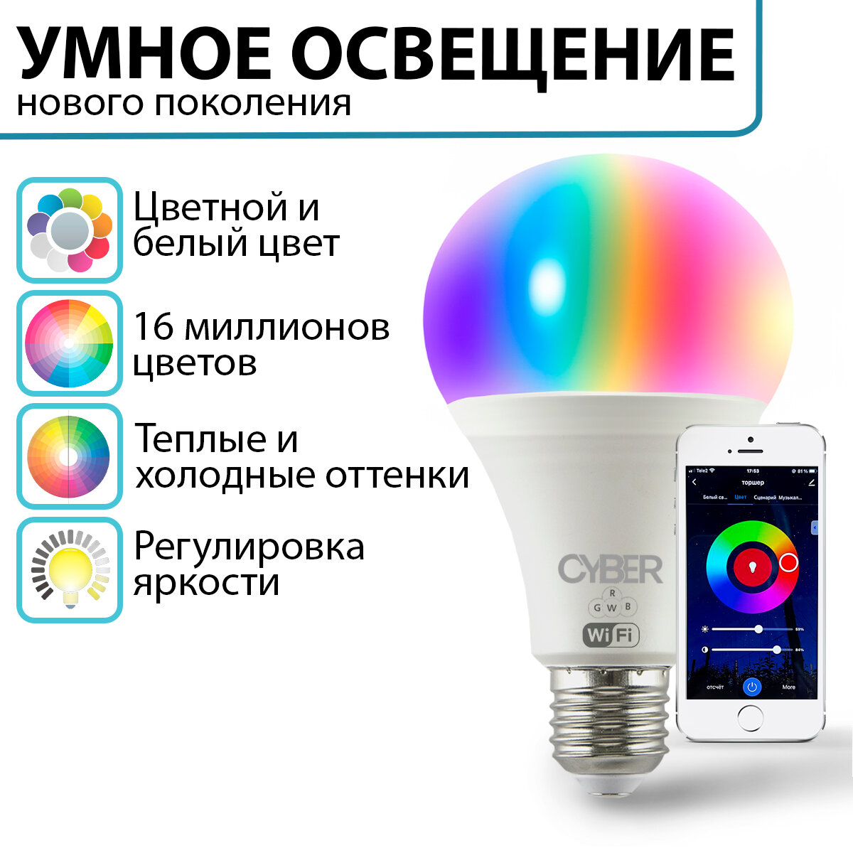 Умная цветная лампочка для Яндекс Алисы LED светодиодная Wi-Fi RGB