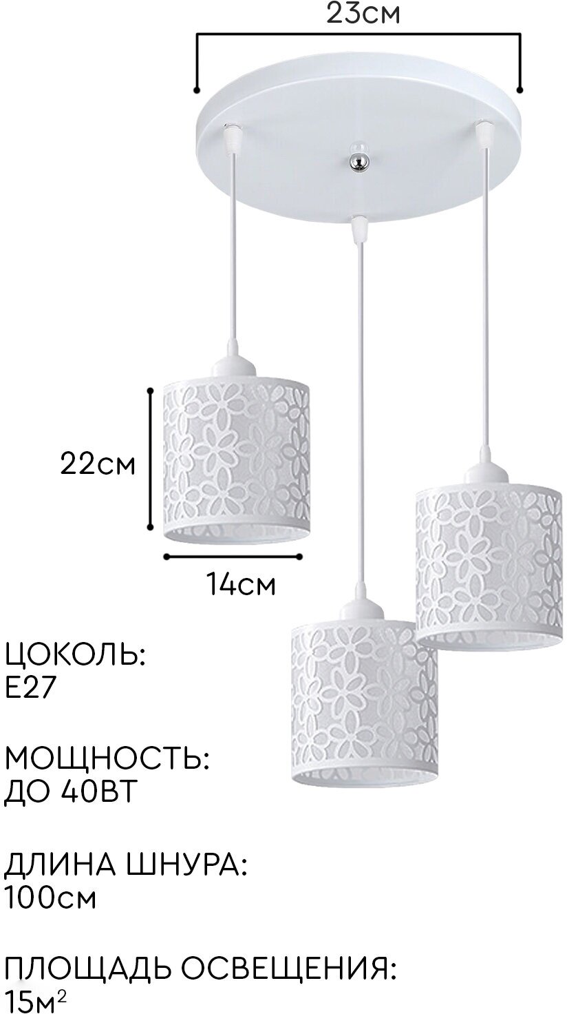 Светильник потолочный 3 лампы Hans&Helma E27, круглое крепление, белый, подвесная люстра лофт для гостиной кухни спальни коридора стильный интерьер информация: