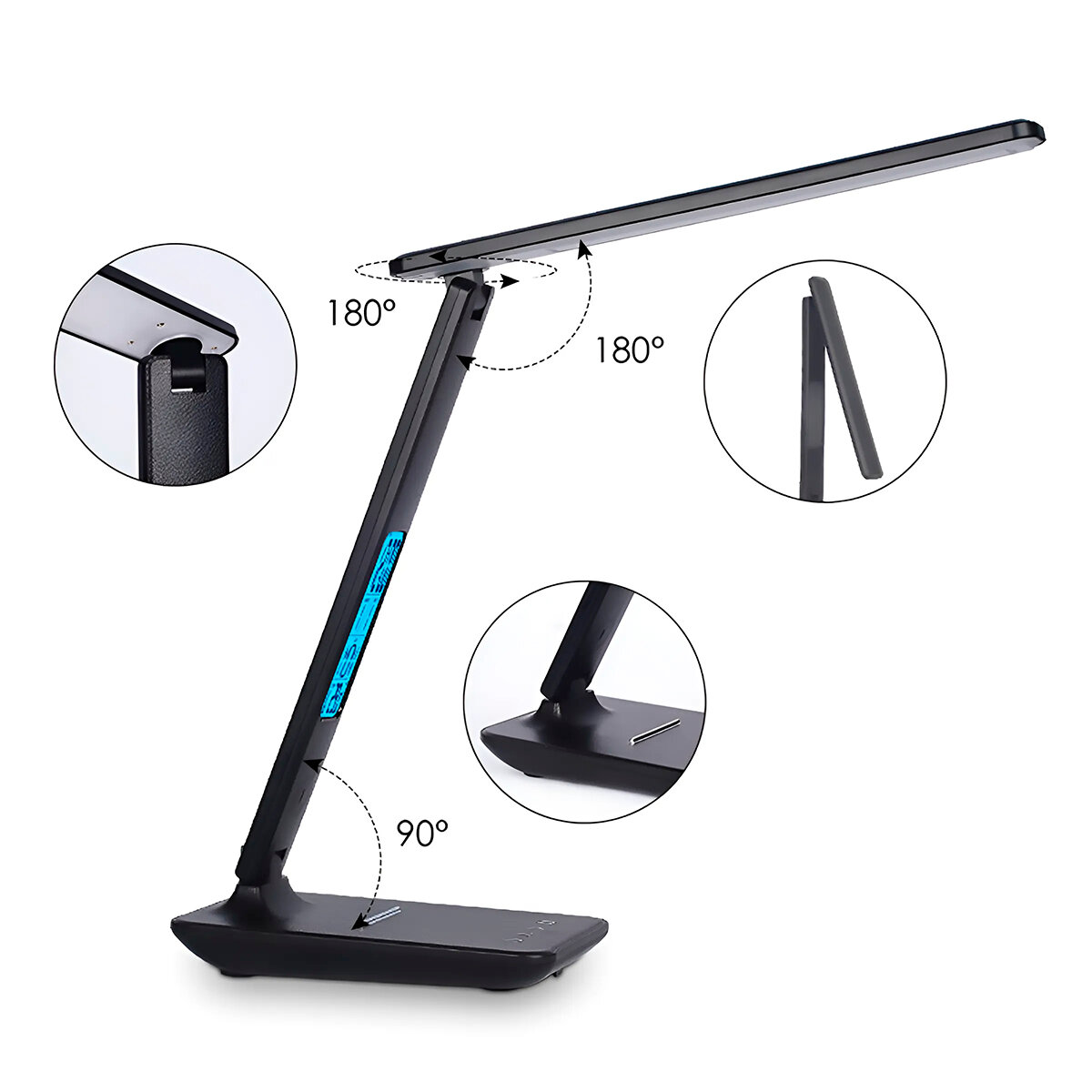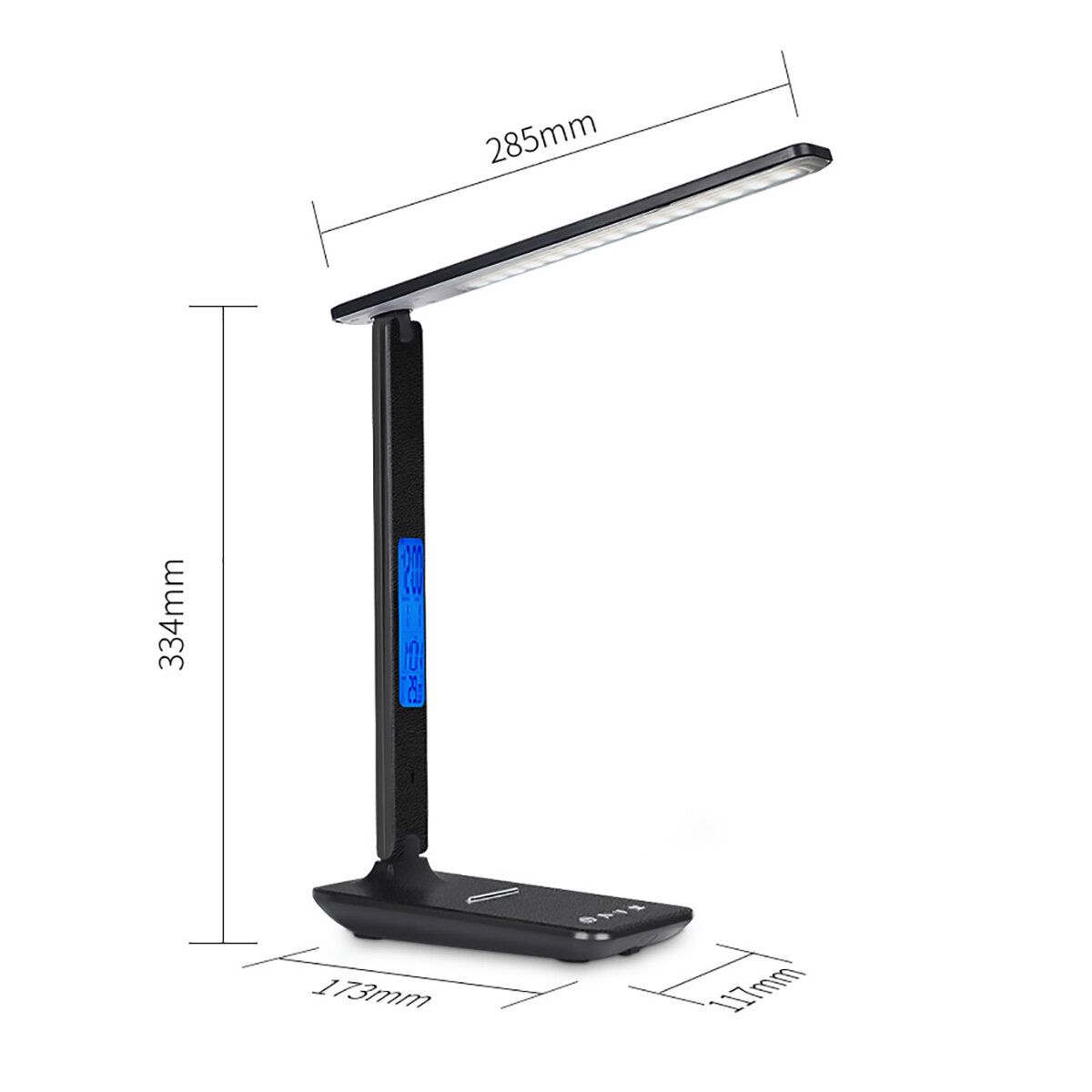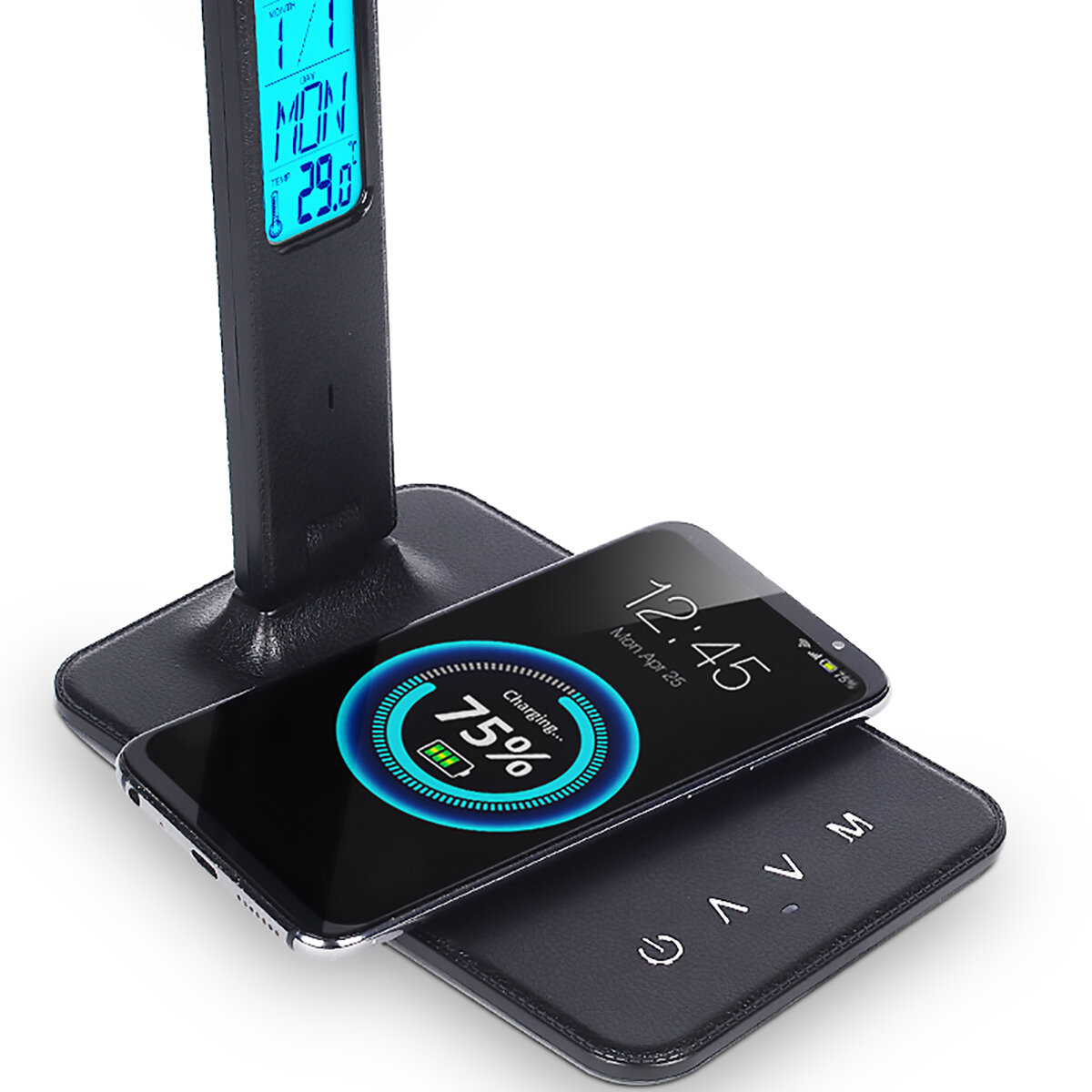 Настольная лампа светодиодная многофункциональная LED с будильником календарем беспроводной зарядкой часов