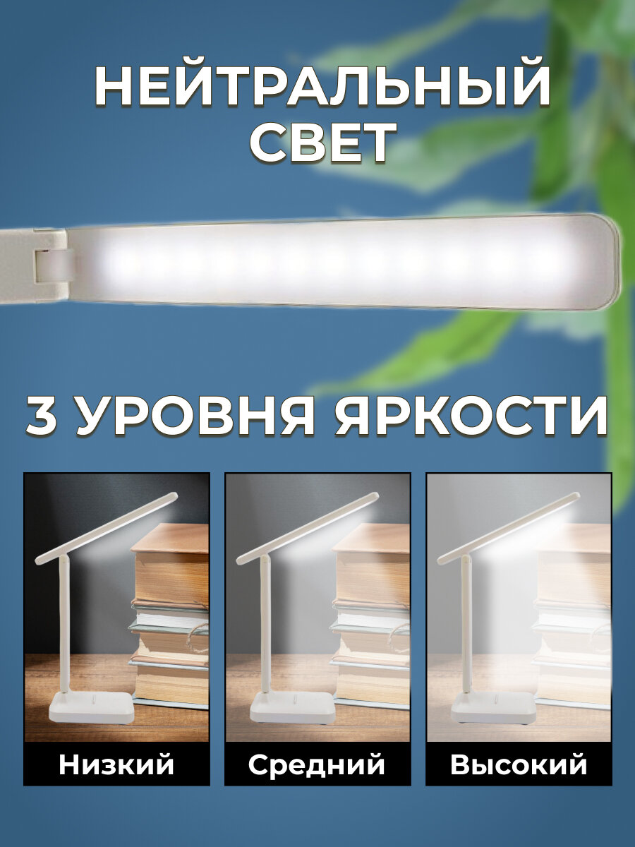 Настольная светодиодная лампа белая, 3 режима, 12 LED ламп, зарядка micro usb, пластик информация: