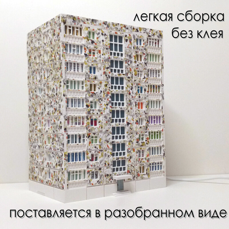 Отзывы на Ночник декоративный "Домик - панелька 9 этажей" мрамор цветной