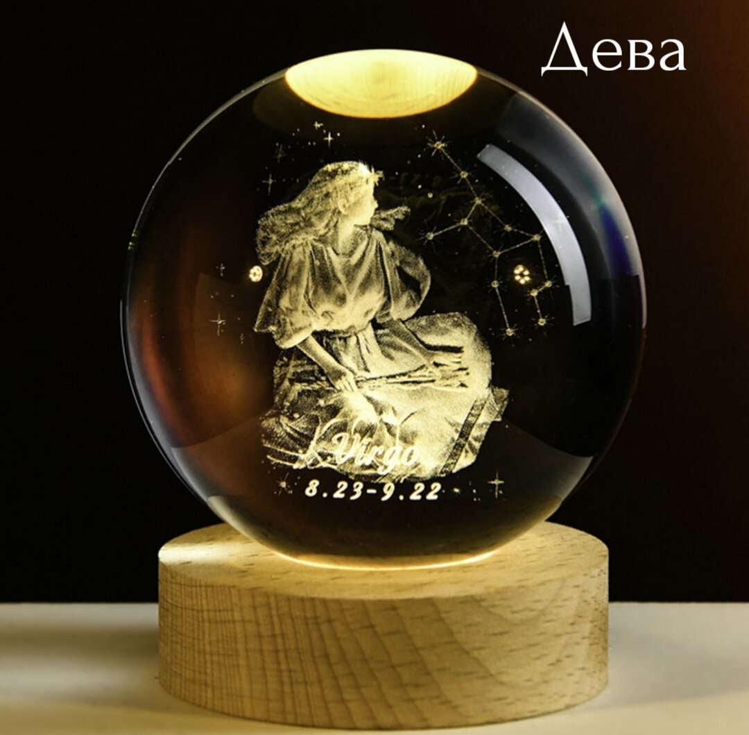 Хрустальный шар ночник Знак зодиака "Дева" с 3D лазерной гравировкой информация: