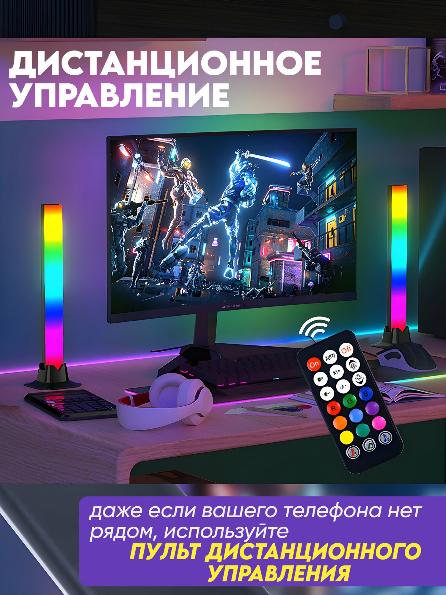 Светодиодные умные RGB лампы (Led светильники) с пультом управления и Bluetooth для компьютера, для телевизора, светомузыка для вечеринки информация: