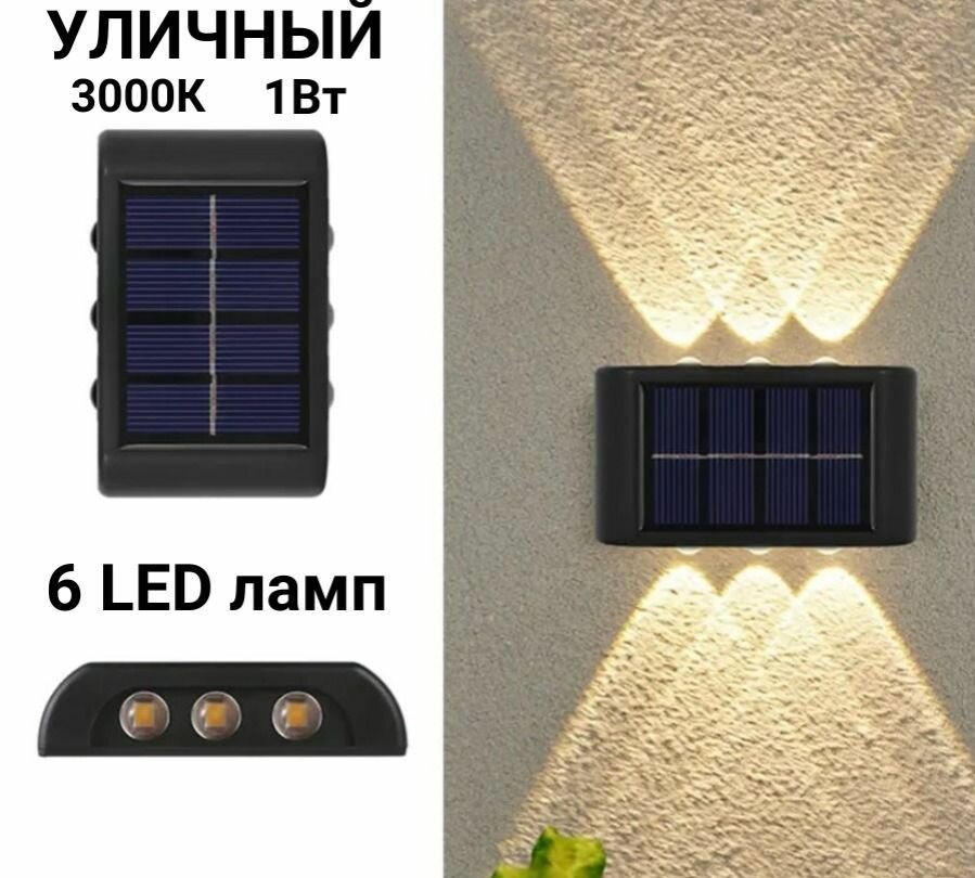 Светодиодный уличный настенный светильник с 3 лампами водонепроницаемый на солнечной батарее 6 ламп Теплый свет информация: