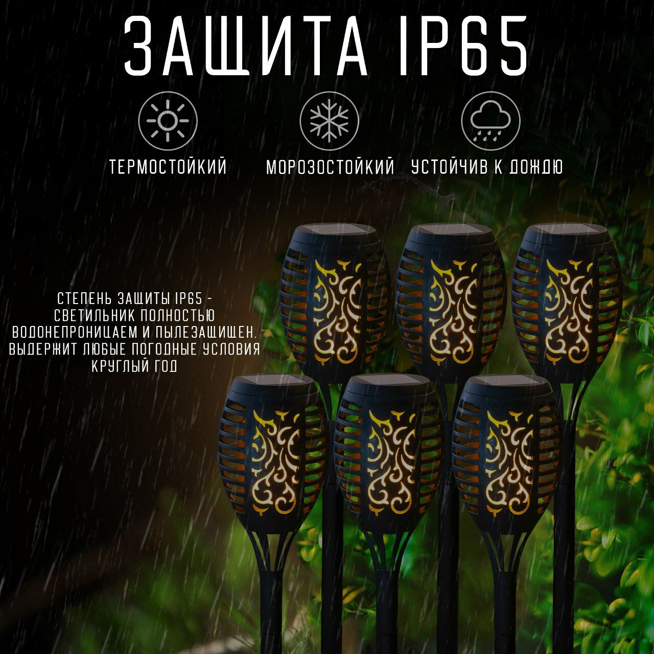 10 цен на Светильники садовые на солнечной батарее с защитой от влаги, эффект пламени, "Факел", с колышком, 6шт комплект