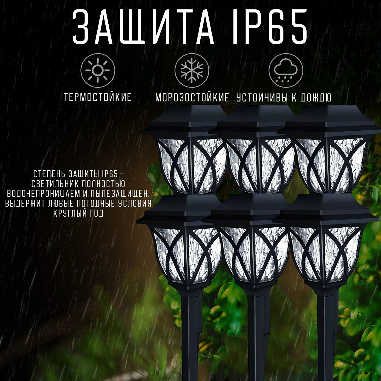Светильники садовые на солнечной батарее с защитой от влаги, эффект пламени, "Факел", с колышком, 6шт комплект 2 450 ₽