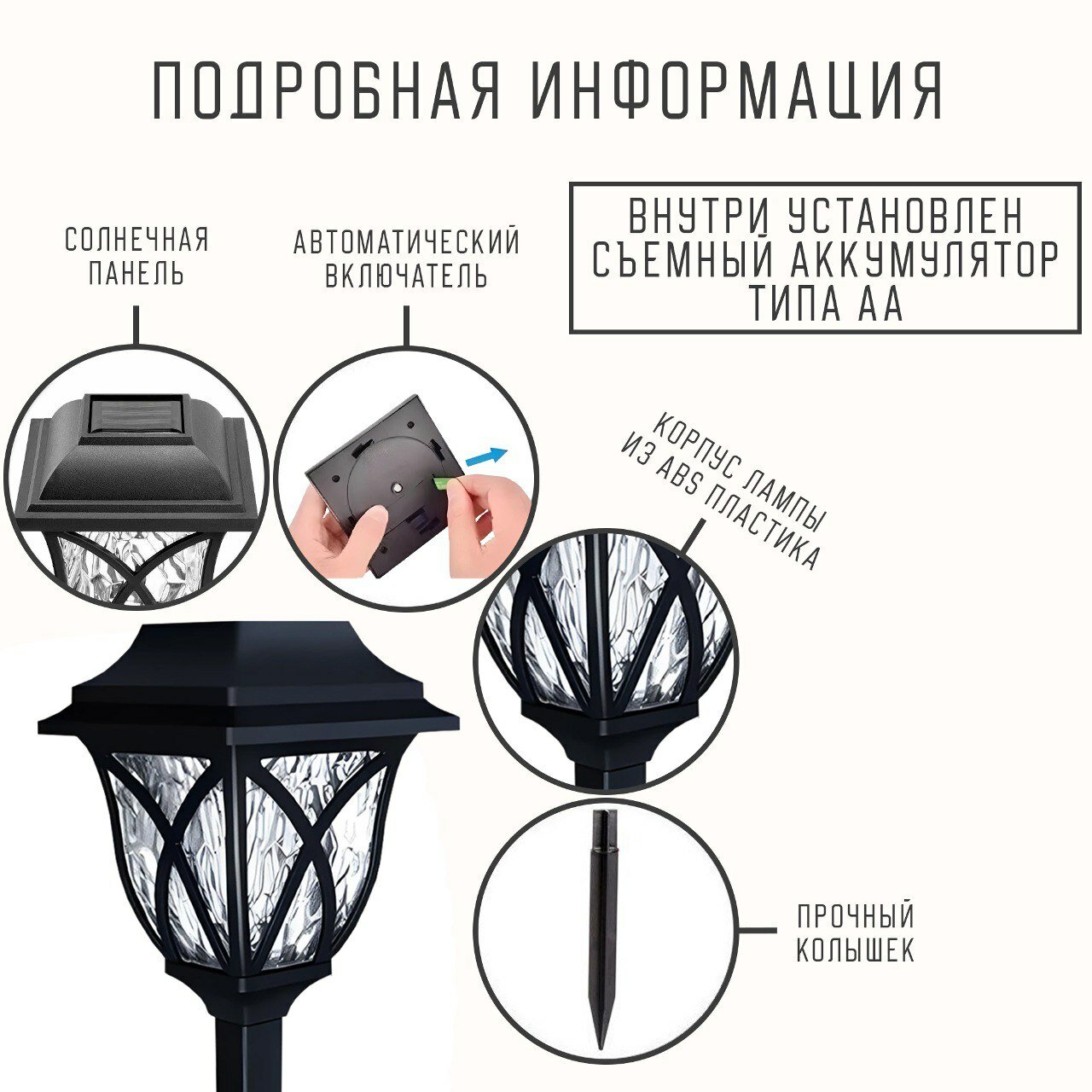 Светильники садовые на солнечной батарее с защитой от влаги, "Ретро-1", с колышком, 6 штук комплект информация: