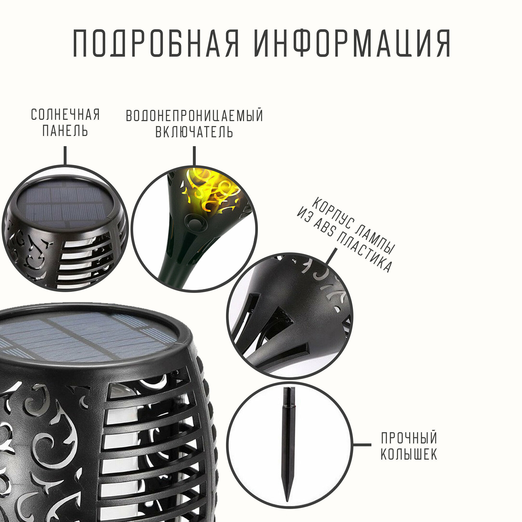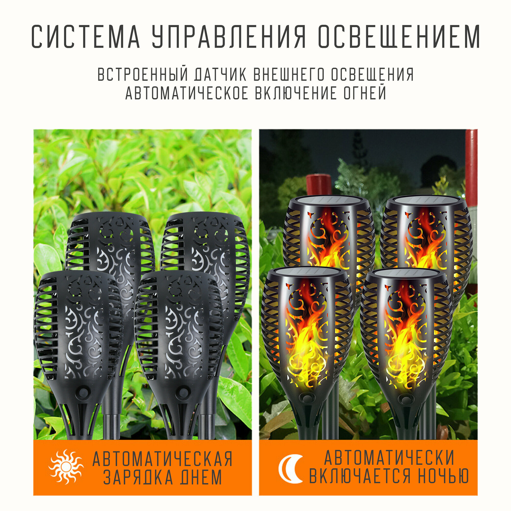 Светильники садовые на солнечной батарее с защитой от влаги, эффект пламени, "Факел", с колышком, 4шт комплект информация: