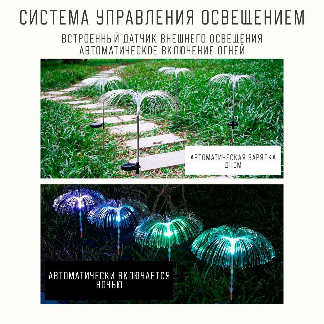 Отзывы на Светильники садовые на солнечной батарее с защитой от влаги, "Медуза", с колышком, 2 штуки комплект