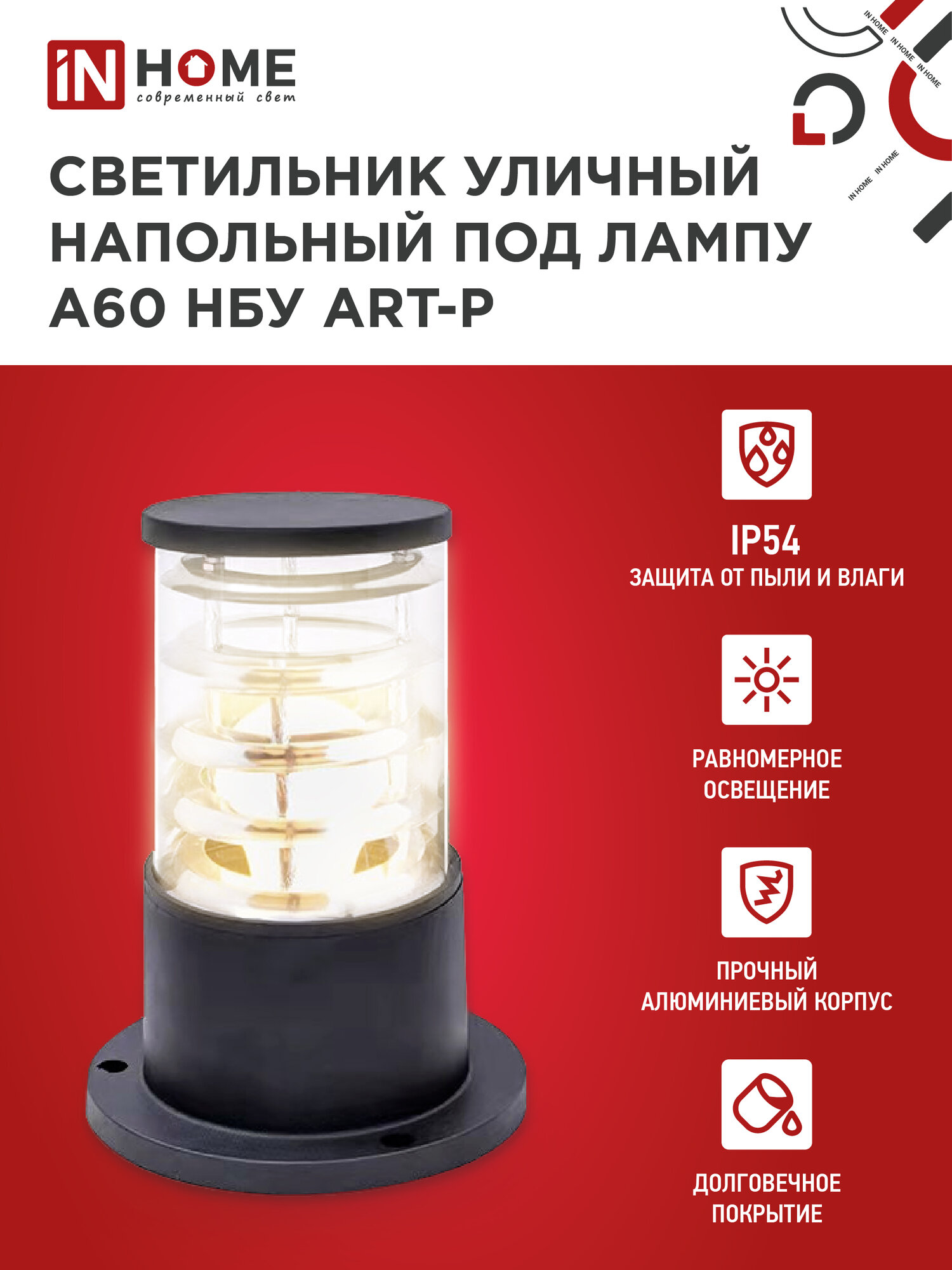 Светильник уличный архитектурный напольный НБУ ART-PS-A60-BL алюм под А60 Е27 300мм черный IP54 IN HOME информация: