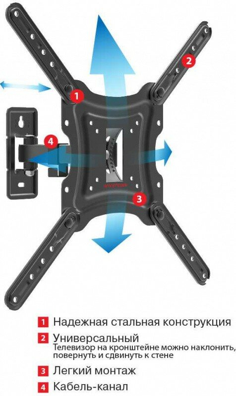 Отзывы на Кронштейн для телевизора Arm Media LCD-403 new черный 26"-55" макс.30кг настенный поворот и наклон