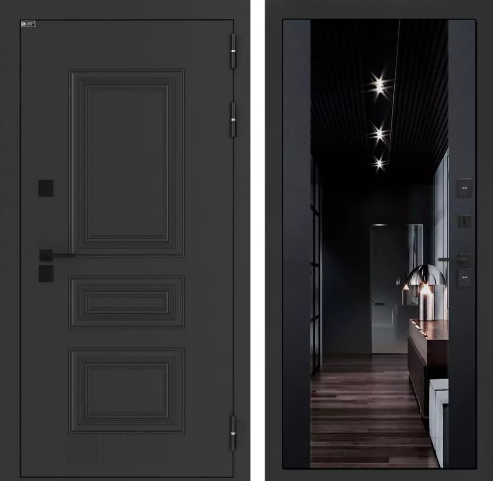 10 цен на Входная дверь Аляска лайт с внутренней панелью зеркало максимум черный кварц, (терморазрыв) размер по коробке 880х2050, левая