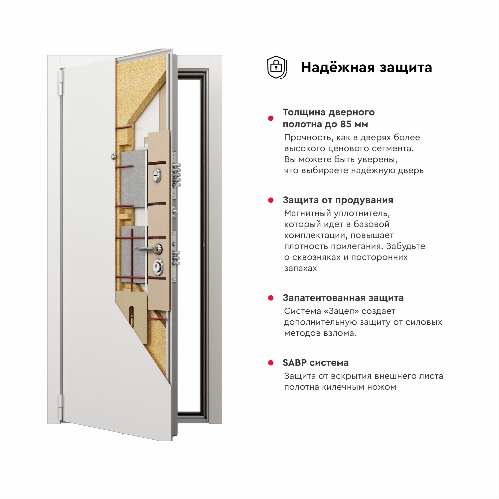 Дверь входная Torex, дверь металлическая для квартиры Comfort 950х2050, открывание влево, усиленная защита и шумоизоляция, замки 4ый класс, белый/бежевый информация: