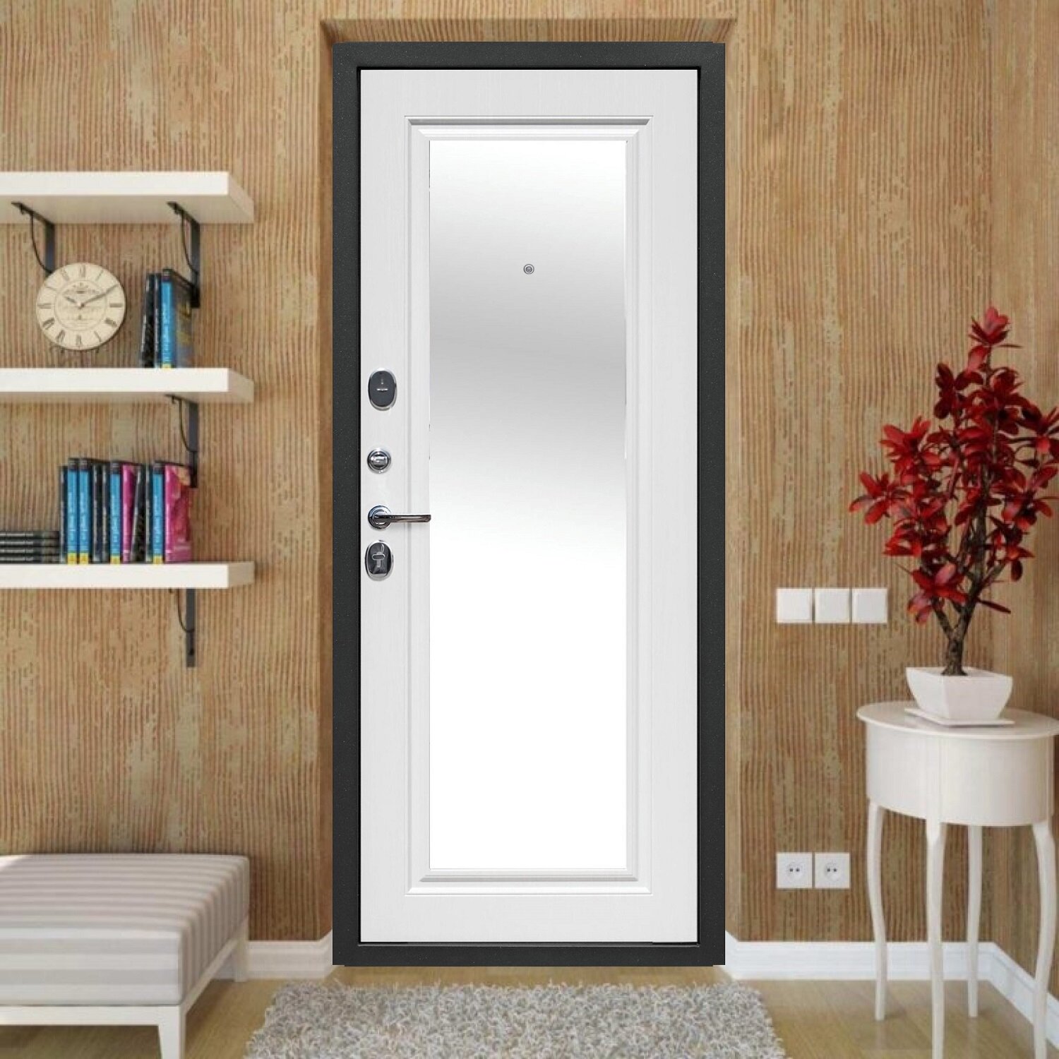 Входная дверь Labirint Лайн WHITE с зеркалом Фацет 960x2050, открывание левое