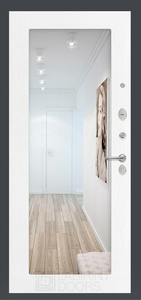 Входная дверь Labirint Лайн WHITE с зеркалом Фацет 960x2050, открывание левое
