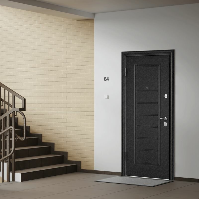 Дверь входная Torex для квартиры металлическая Flat-M 950х2050, открывание влево, тепло-шумоизоляция, антикоррозийная защита, замки 4-го и 2-го класса защиты, черный/белый 46 339 ₽