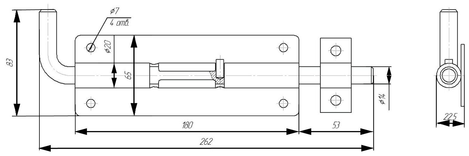 Задвижка дверная, ригель круглый гнутый, Секрет-Киров, 180 мм, ЗД-10, 09495, бронза информация: