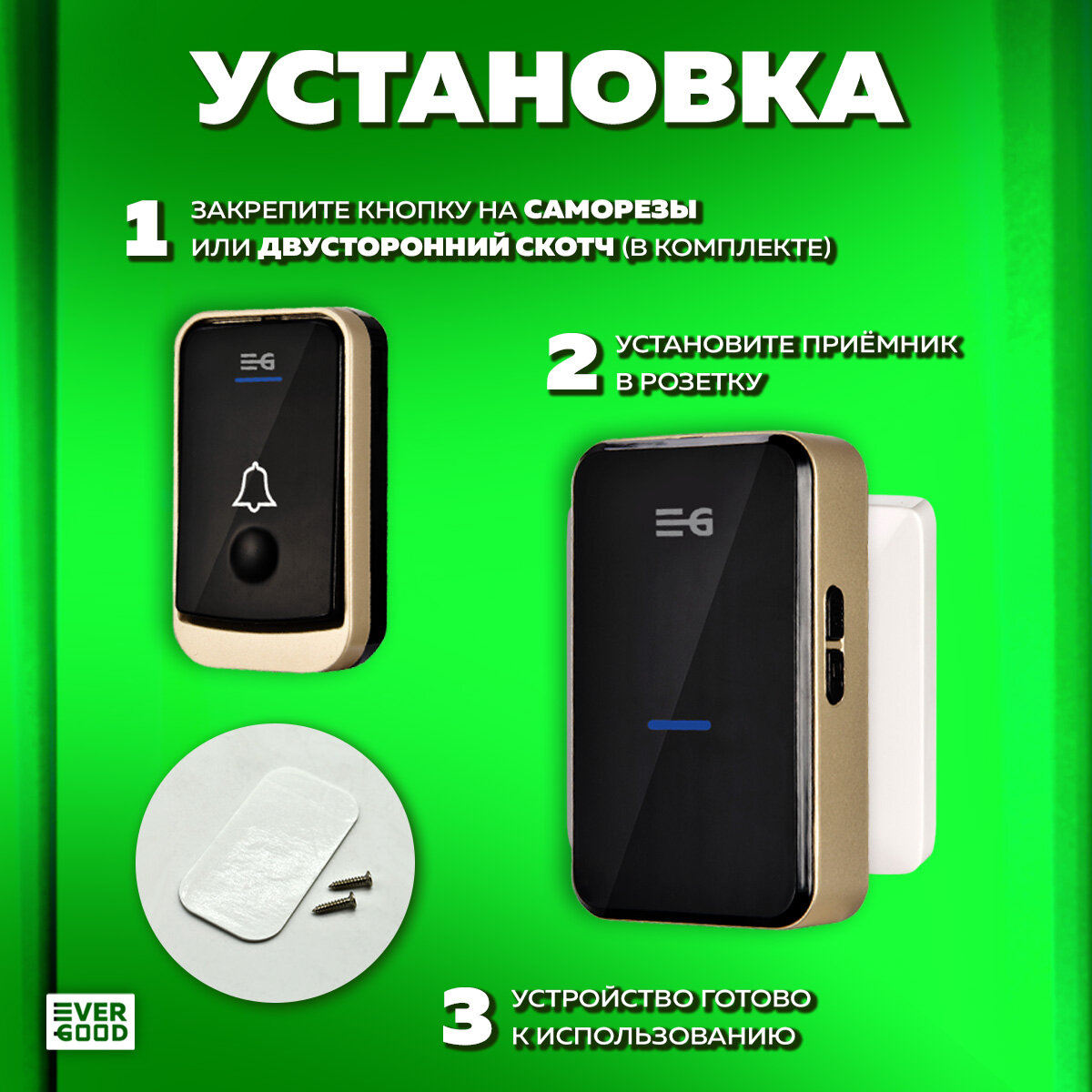 Звонок беспроводной дверной в розетку от сети 220В EG-DB01 EVERGOOD информация: