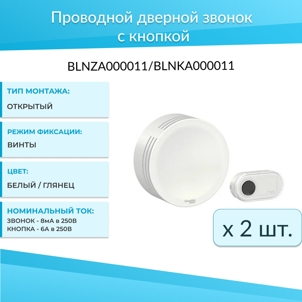 (2шт) Комплект проводного звонка и кнопки (белый) BLNZA000011 + BLNKA000011 информация:
