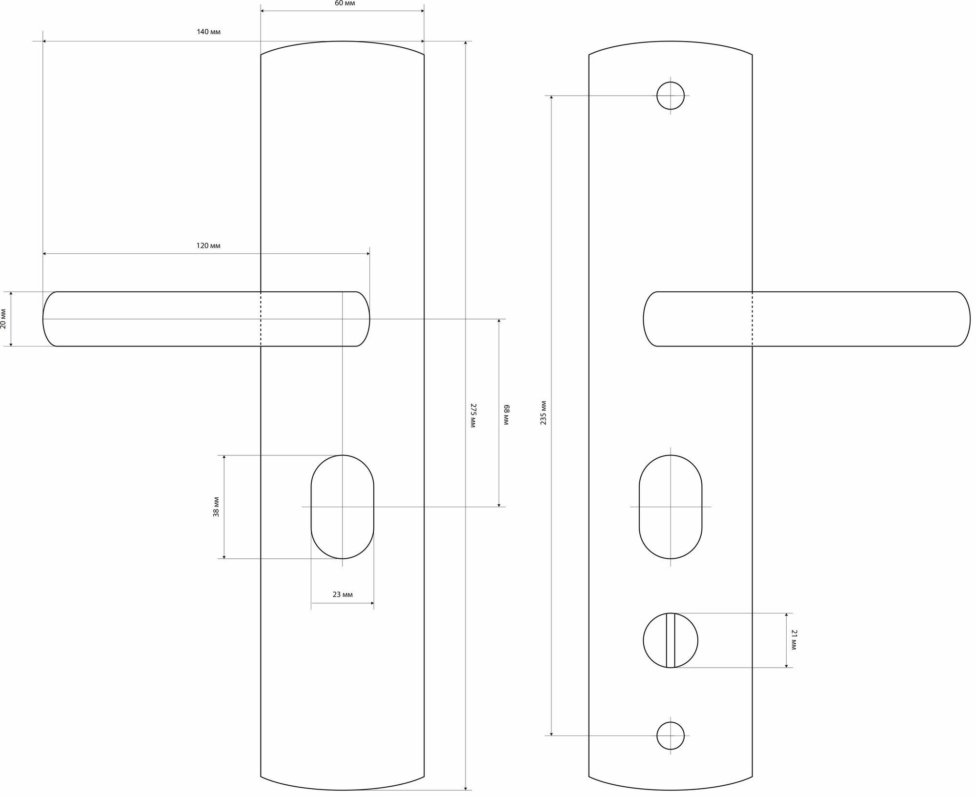 Дверные ручки на планке Стандарт PH-CT217-L для китайских металлических дверей (левые)