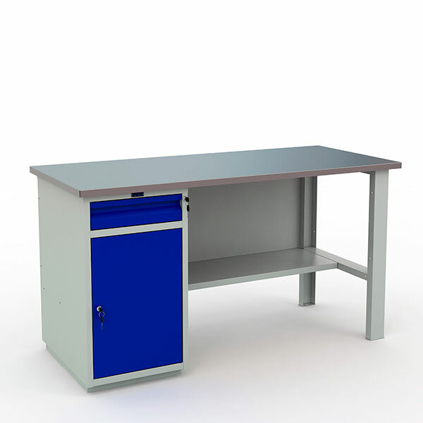 Стол верстак слесарный металлический с тумбой с дверью и ящиком, 1600 мм, практик PROFI WT160.WD2/F1.000 информация: