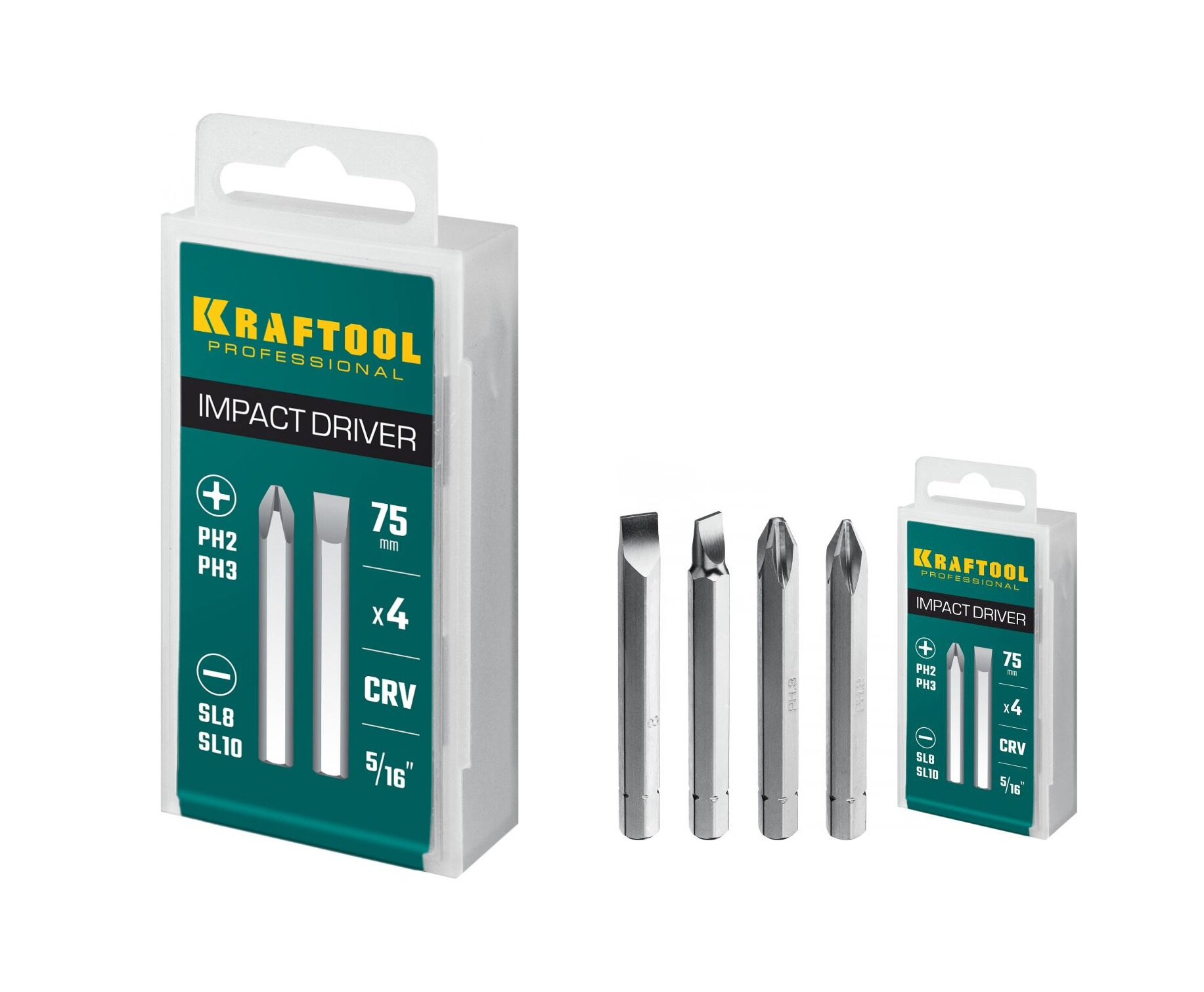 Комплект бит для ударной отвертки 4 шт, 75 мм Kraftool 25552