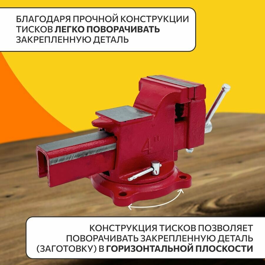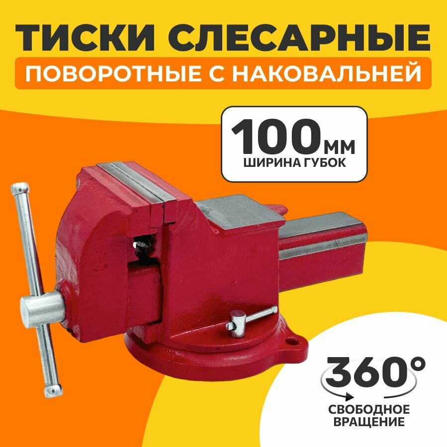 Отзывы на Тиски слесарные чугунные, настольные, поворотные c наковальней 100 мм.