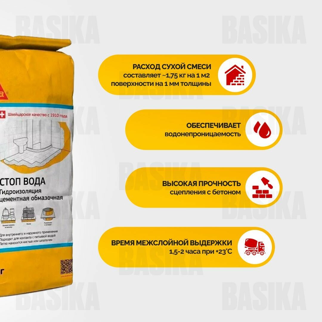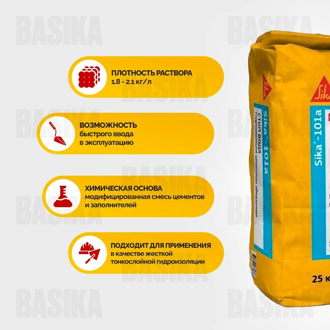 Sika-101a Тонкослойная гидроизоляция на цементной основе, 20 кг информация: