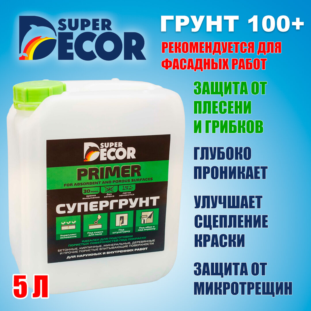 10 цен на SUPER DECOR Грунтовка с антисептиком "100+" , 5кг