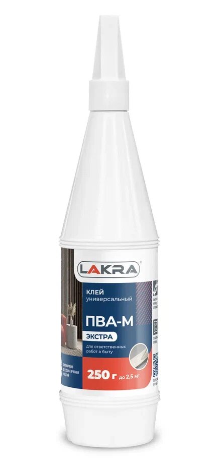 | Дополнительная информация | Клей ПВА-М ЛАКРА Экстра универсальный 0,25кг, арт.экстра-250 |