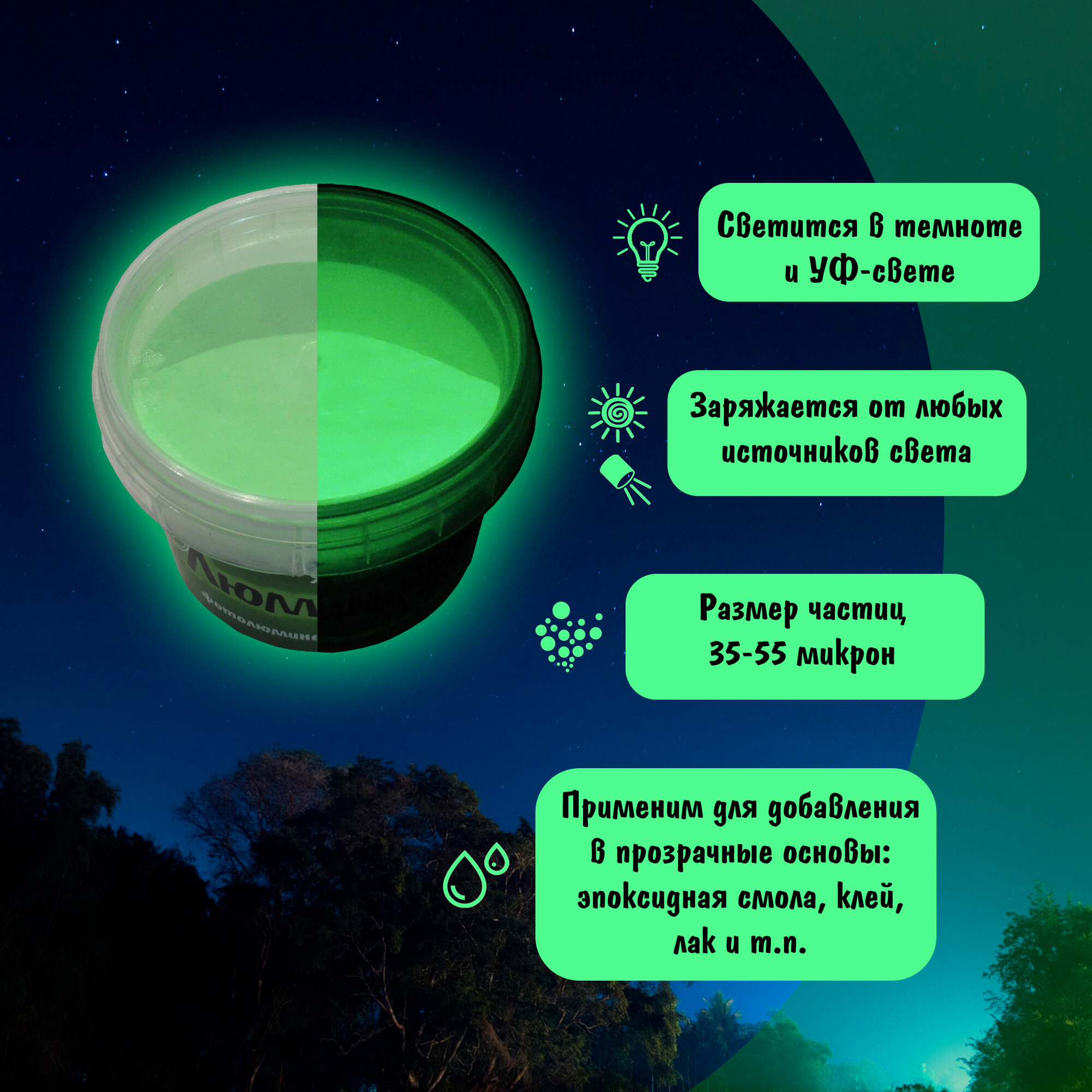Отзывы на Люминофор (Фотолюминесцентный пигмент), цвет Зелёный, свечение Зелёное, 100 гр.