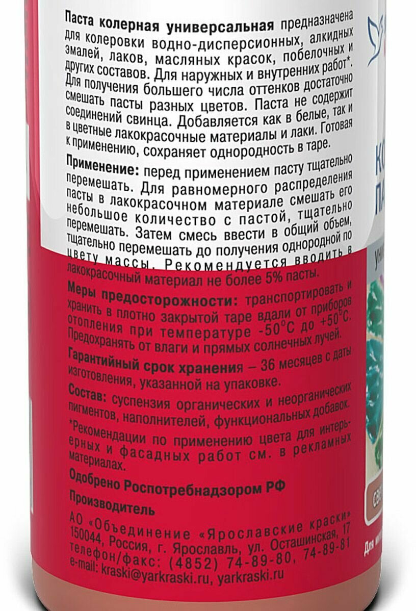 Паста колерная универсальная Ярославские Краски (0,1л) красный